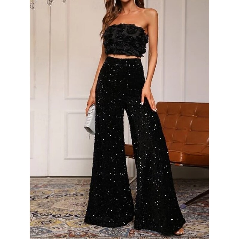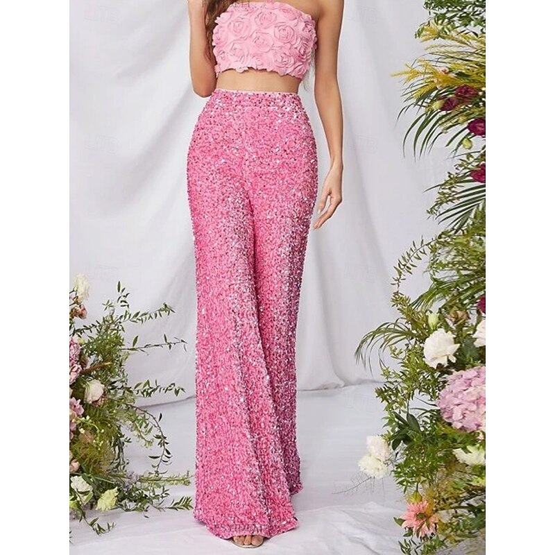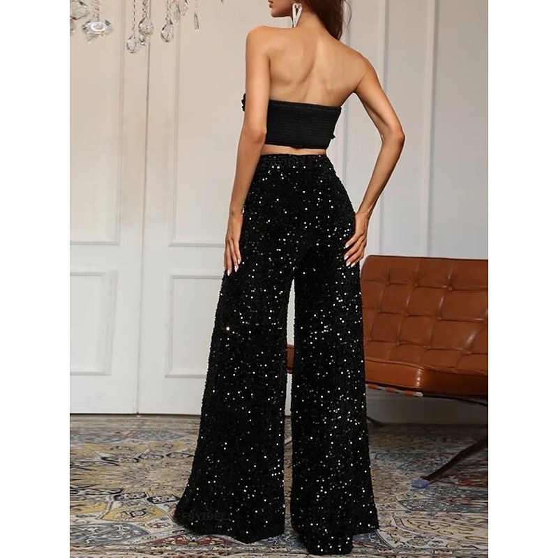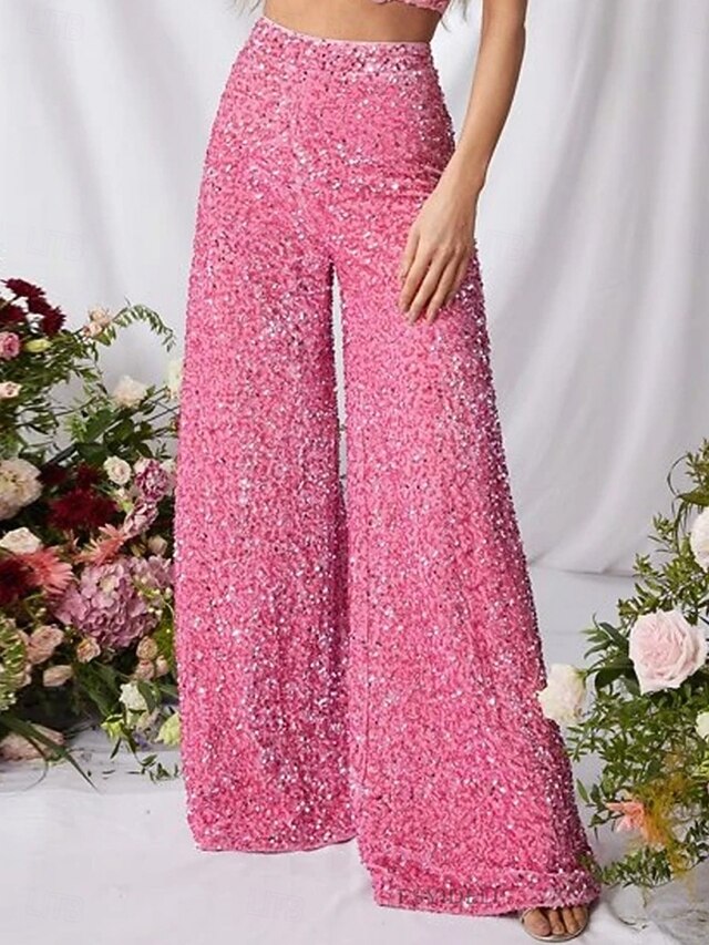 This Women's Wide Leg Chinos Baggy Pants Fashion Streetwear Full Length High Waist Plain Sequins Comfy Soft cushy Micro-elastic Outdoor Party Street Black Pink Red Summer Spring Regular Fit combines elegant design with practical functionality. Every detail has been carefully considered to ensure you get the best possible experience. The first-class construction means this product will serve you well for years to come.