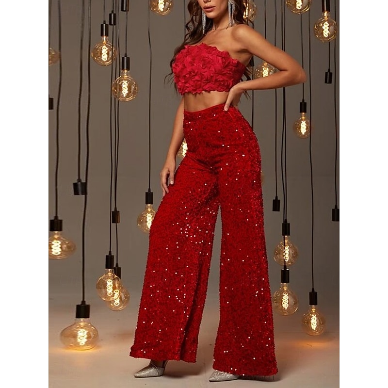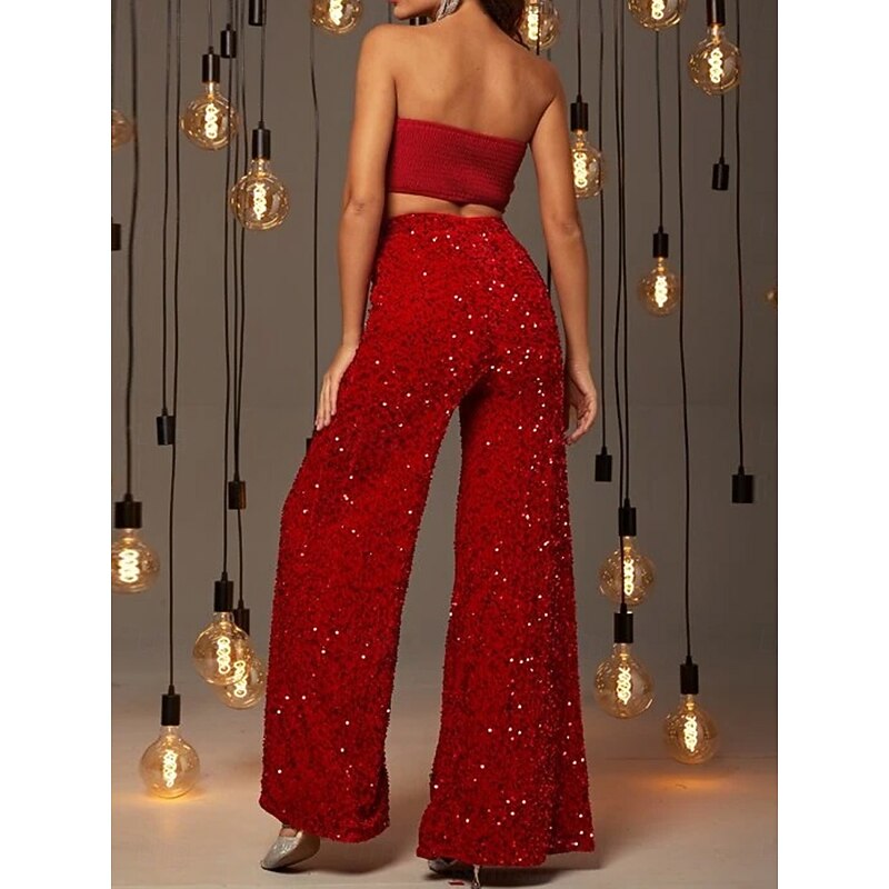 Why Choose Women's Wide Leg Chinos Baggy Pants Fashion Streetwear Full Length High Waist Plain Sequins Comfy gentle soft Micro-elastic Outdoor Party Street Black Pink Red Summer Spring Regular Fit?