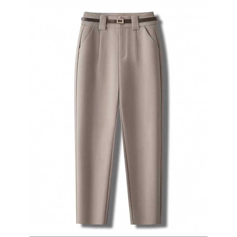 Highlights [Fabric:] Crafted from a durable blend of polyester and featuring micro-elasticity, these womenβs dress pants ensure both comfort and a polished look. The flannel-like texture offers warmth, making them perfect for fall and winter seasons. [Fit:] These straight, full-length trousers provide a sleek and tailored appearance, designed to enhance a contemporary yet vintage silhouette. [Design Highlights:] The high-waisted design is complemented by a matching belt with a distinctive square-shaped buckle, adding a fashionable yet functional touch. The inclusion of front pleats refines the silhouette, while side pockets add practicality without disrupting the clean lines. The ankle-length cut is perfect for showcasing various styles of footwear. [Occasions:] Versatile in nature, these pants seamlessly transition from the office to casual streetwear settings. Their neutral tones, available in black, coffee, and apricot, make them ideal for various events, whether formal or relaxed. [Size Range:] Available in a wide range of sizes, including S, M, L, XL, and 2XL, these pants are designed to cater to different body types, ensuring a suitable fit for every wearer. Perfect for everyday use. first-class materials and excellent craftsmanship ensure long-lasting durability.