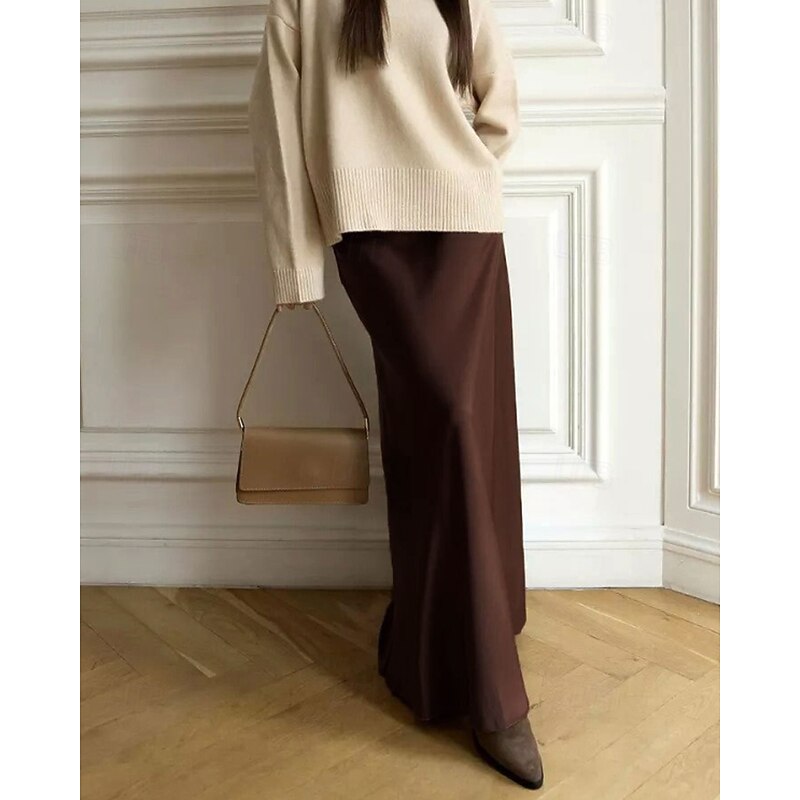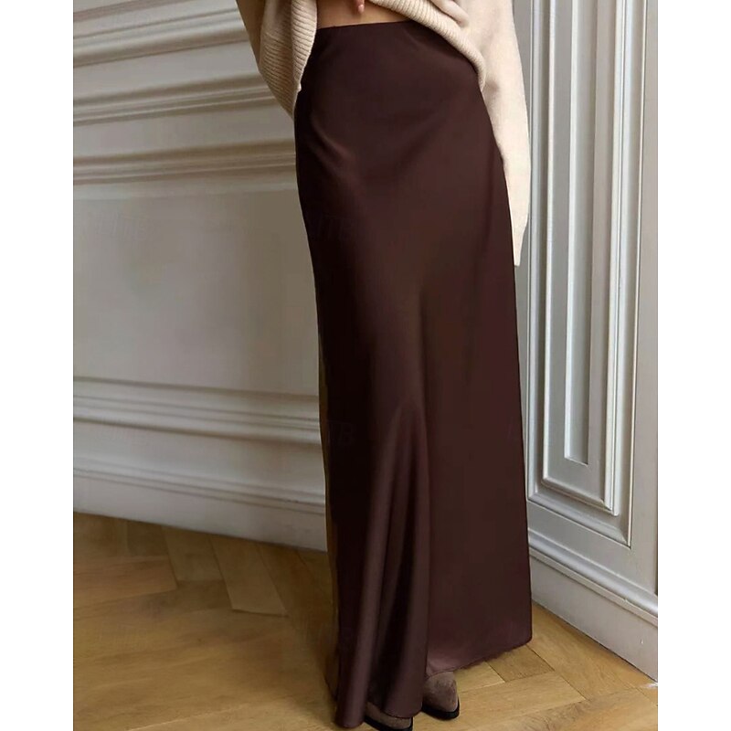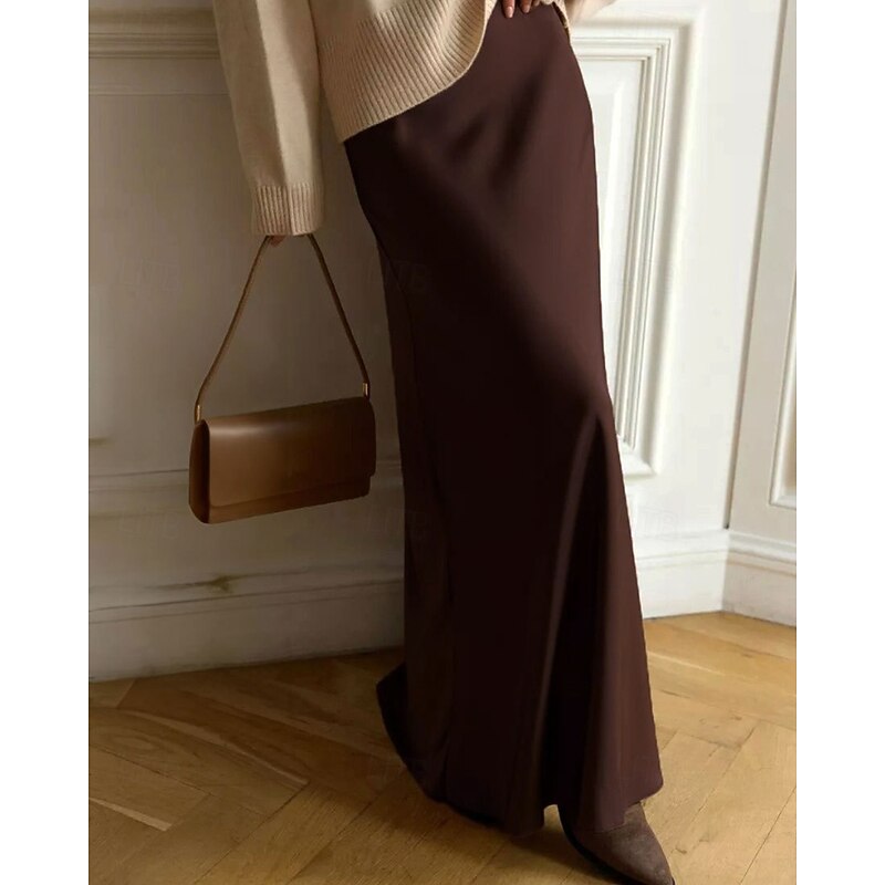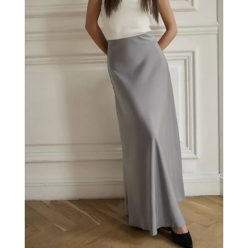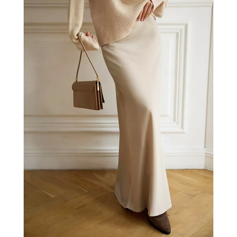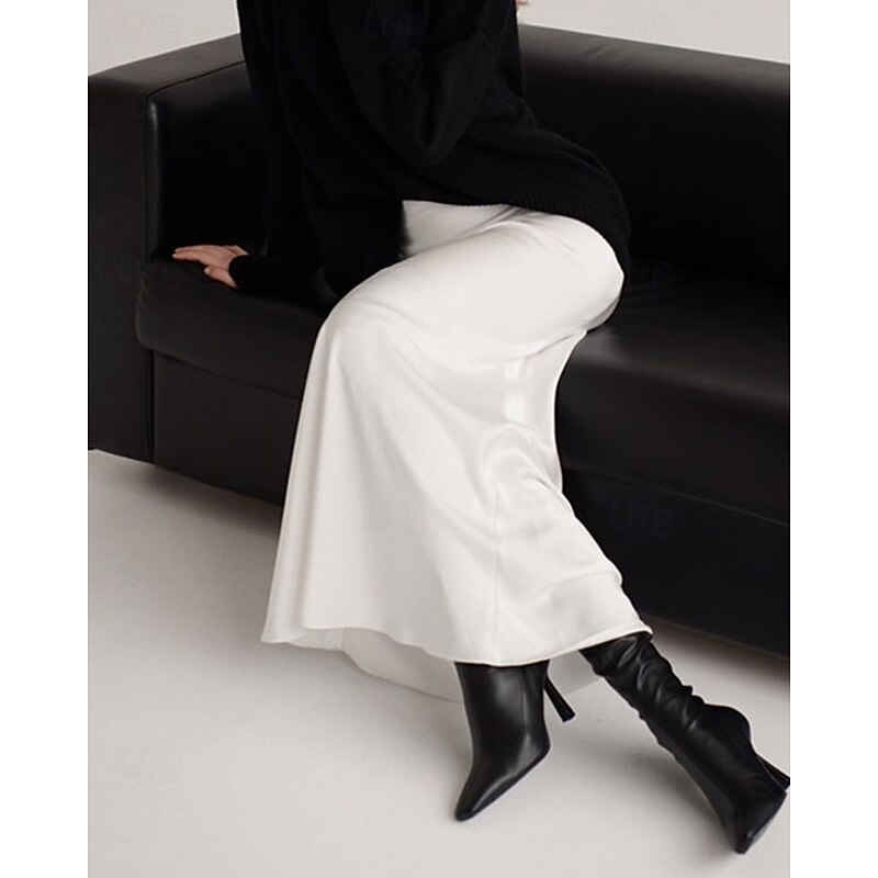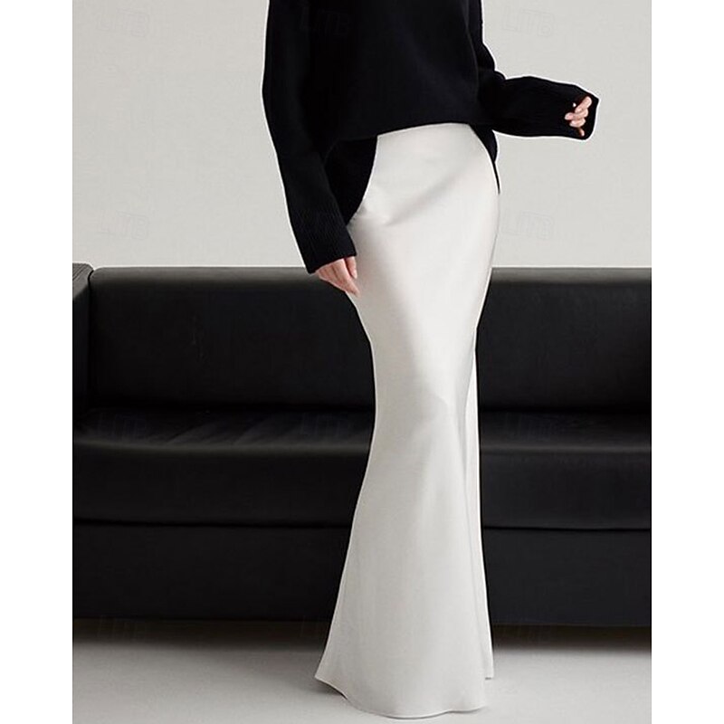More information about Women's Skirt Bodycon Fashion Maxi Mid Rise Skirts Plain Micro-elastic Party Street Black White Khaki Light Grey Fall Polyester