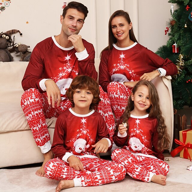 Why Choose Family Christmas Pajamas Cotton Graphic Cute Christmas Pajamas School Print Red Long Sleeve Mommy And Me Outfits Active Matching Outfits Home Outfits?