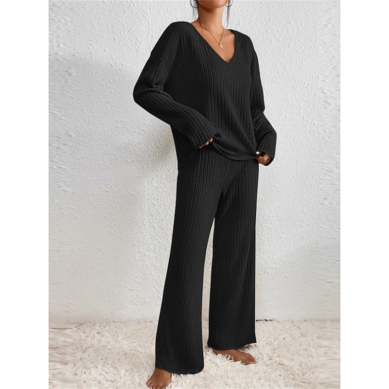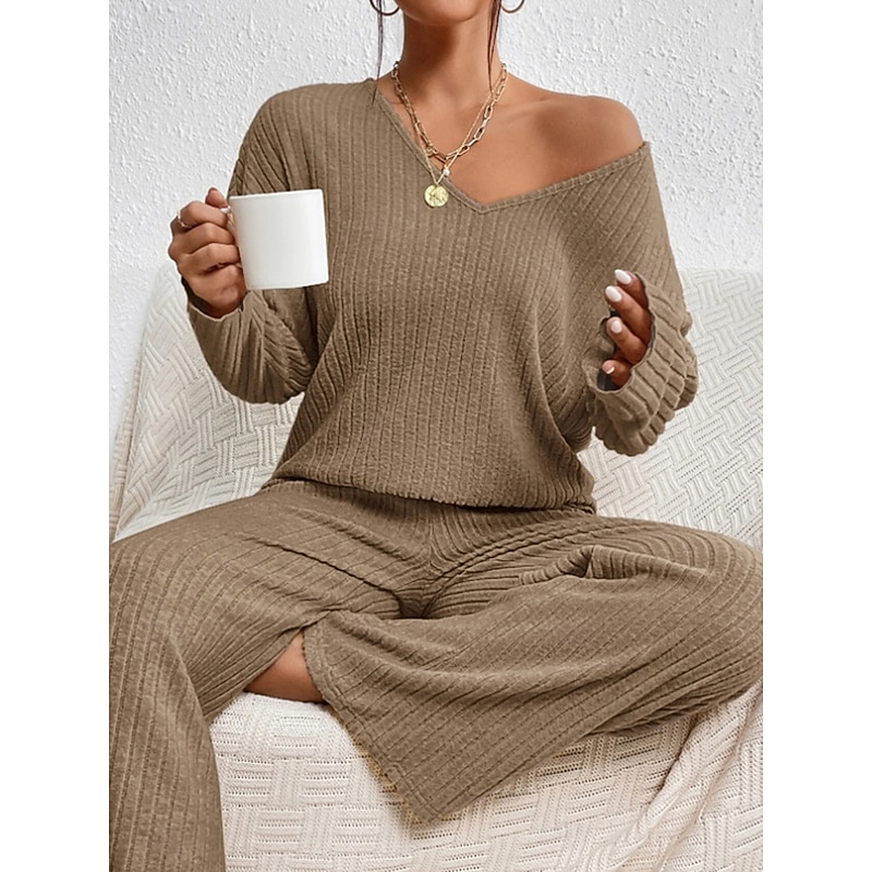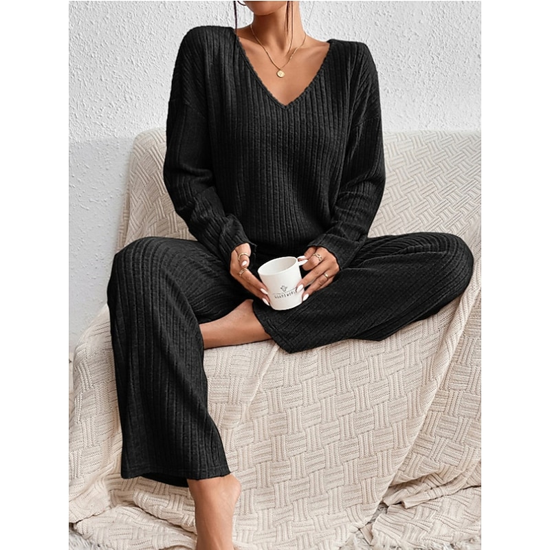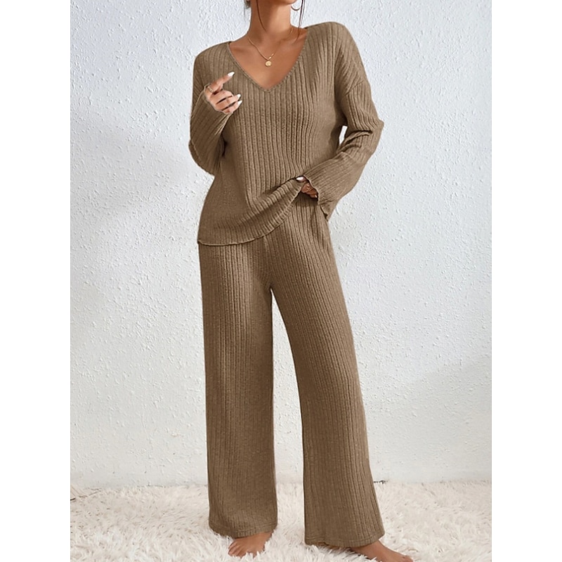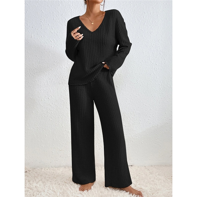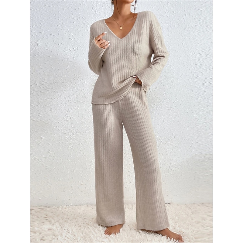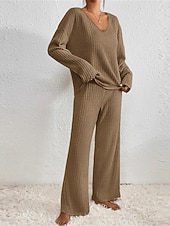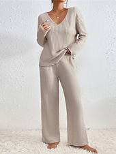 $32.99 - Women's Loungewear Sets Pure Color Casual Comfort Soft Home Daily Vacation Knit Breathable V Wire Long Sleeve Sweater Pant Fall Winter Home Outfits 2025. Shop for cheap Women's Loungewear online? Buy at lightinthebox.com on sale today!