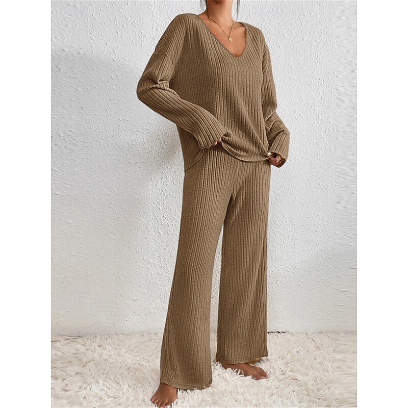trending ! Women's Loungewear Sets Pure Color Casual Comfort supple Home Daily Vacation Knit Breathable V Wire Long Sleeve Sweater Pant Fall Winter Home Outfits