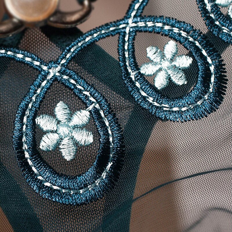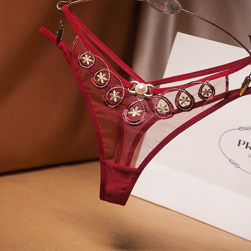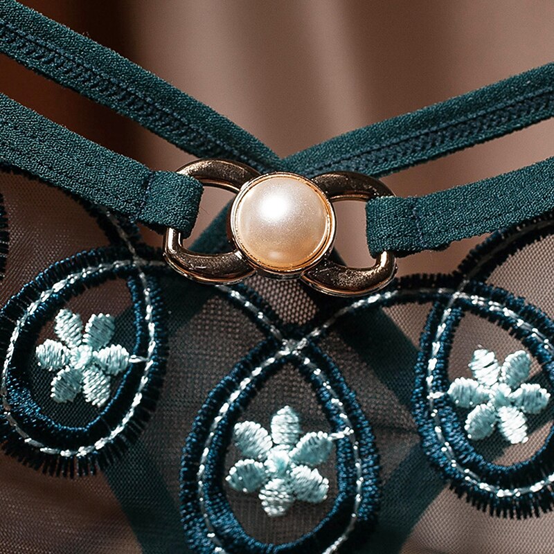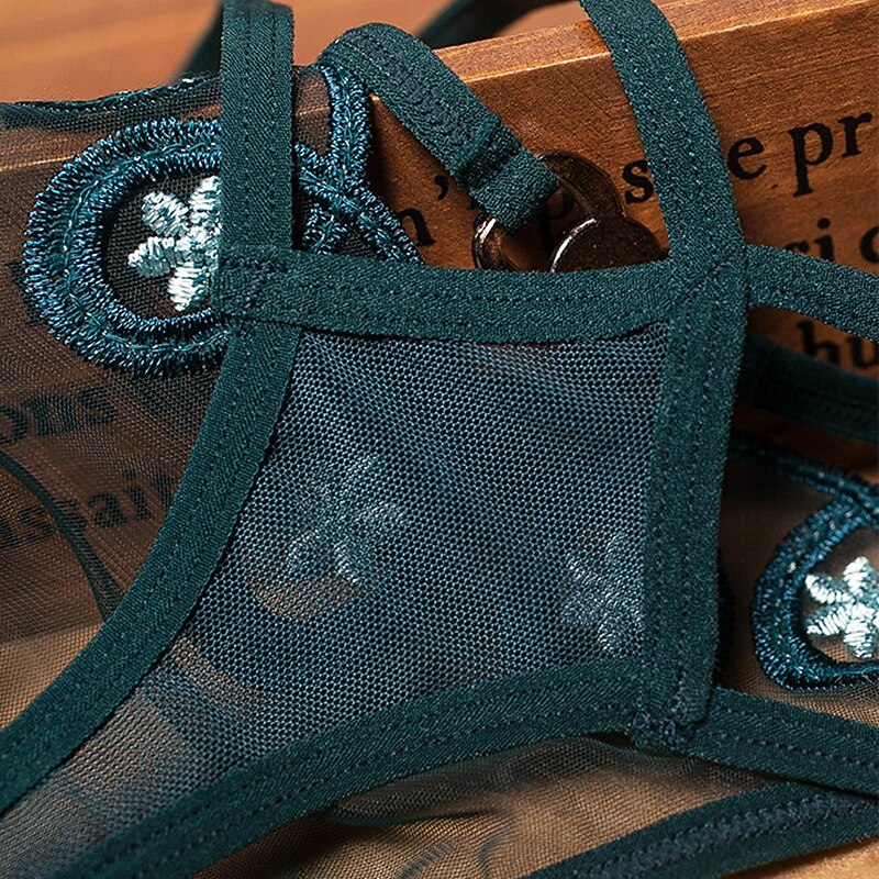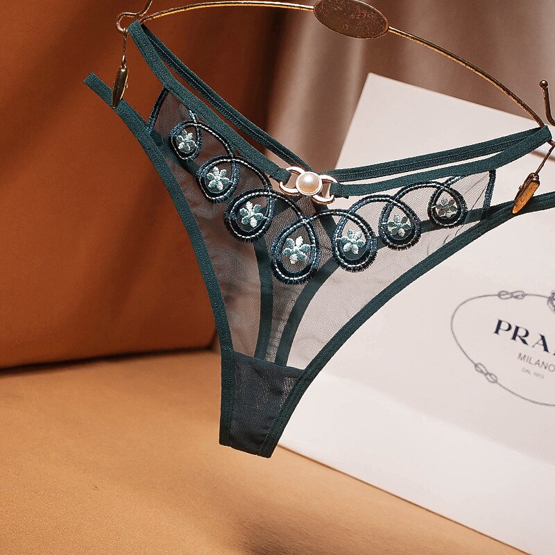 Highlights [Fabric] Crafted from a delicate nylon mesh, these panties offer a luxurious feel with breathable comfort. Designed to be both alluring and practical, the micro-elasticity ensures a snug yet gentle fit. [Style] With a classic low-waist design, these panties belong to the G-strings and thongs category, making them a staple for any fashion-forward wardrobe. Their sleek and current look is complemented by the sheer elegance of the mesh fabric. [Design Highlights] The panties feature an elegant strappy design with a charming decorative pearl at the center, adding a touch of glamour. The intricate floral embroidery in teal on the front further enhances their sophisticated appeal. [Occasions] Ideal for special occasions or adding a sense of luxury to everyday wear, these panties are perfect for any woman looking to elevate her intimate apparel collection with a modern, sexy edge. [Size] Available in one-size, these panties are designed to fit a range of body types, providing a versatile addition to any lingerie drawer. With multiple color options including green, white, black, red, purple, wine, and lavender, thereβs a perfect shade for every preference. Perfect for everyday use. premium materials and excellent craftsmanship ensure long-lasting durability.