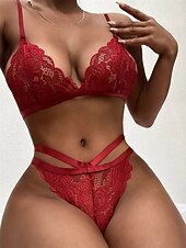 Women's Sexy Bodies Lingerie Set Sets Pure Color Fashion Lovers sizzling Home Valentine's Day Lace Breathable V Wire Sleeveless Backless Summer Spring Home Outfits