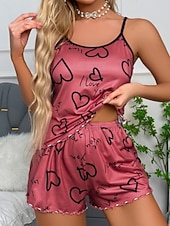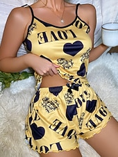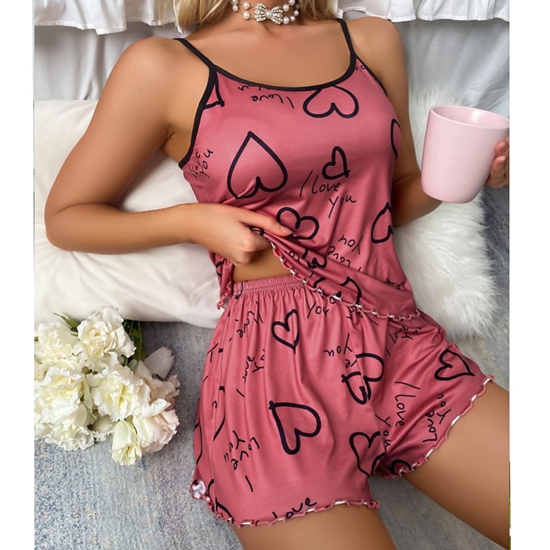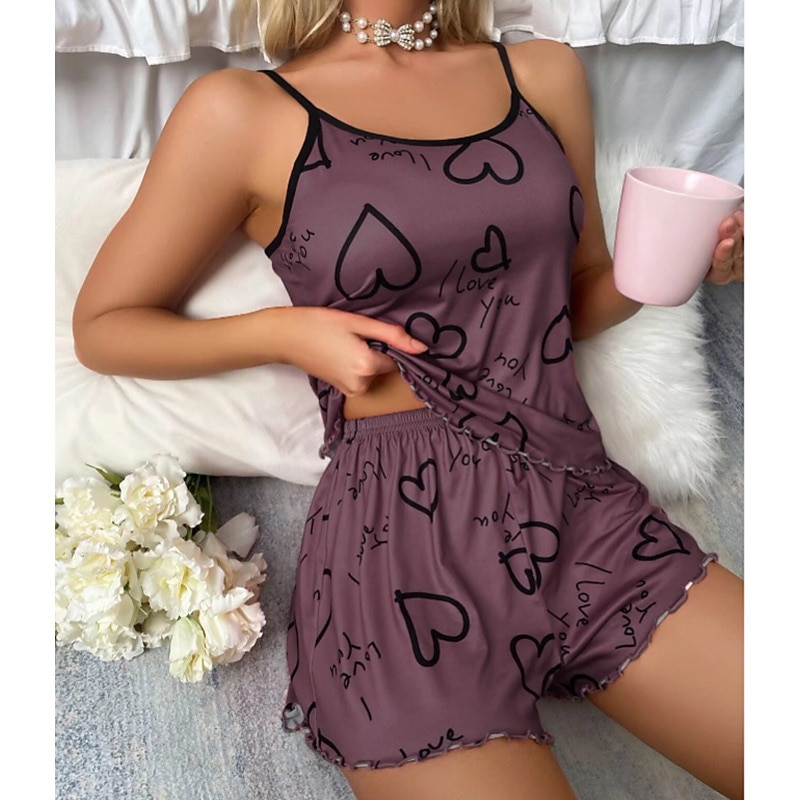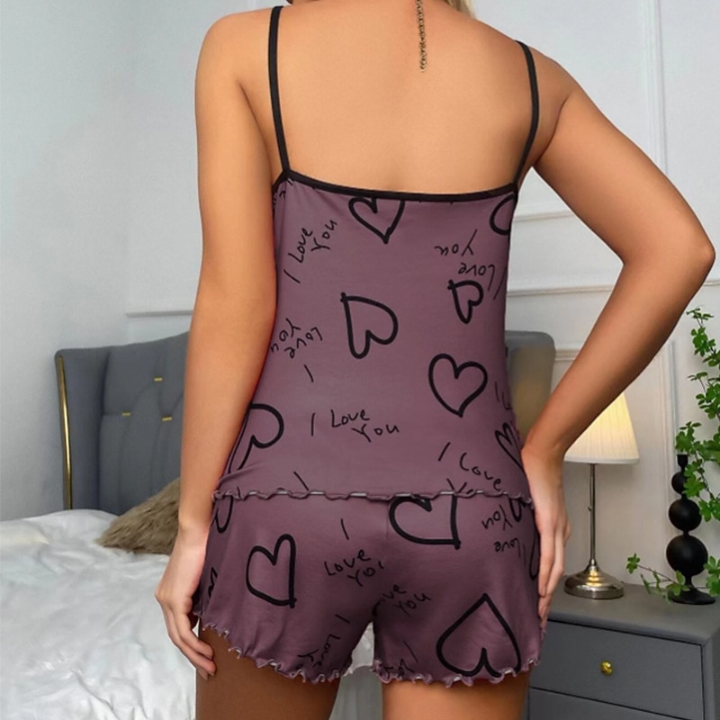Women'S Sexy Camisole Pajama Print Alphabet Homewear Set Home Outfits