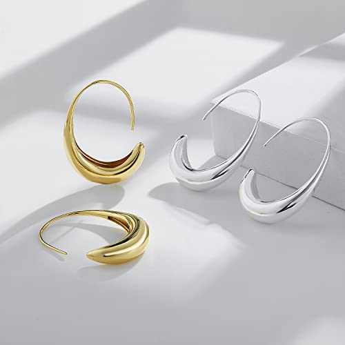 Lightweight Teardrop Hoop Earrings for Women 18k White Gold/Gold Plated Large Oval Hoop Earrings High Polished Statement Hoop Earrings Jewelry Gifts