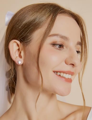 EAMTI 1 Carat 925 Sterling Silver Cubic Zirconia Stud Earrings for Women CZ Stud Small Cute Earrings Hypoallergenic