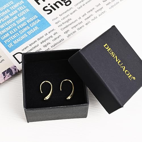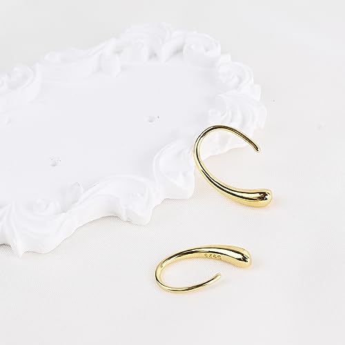 More information about Pull Through Earrings Threader Hypoallergenic Sterling Silver Teardrop Drop Dangle Open Hoop Earrings for Women Trendy - Silver & Gold