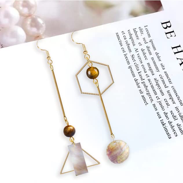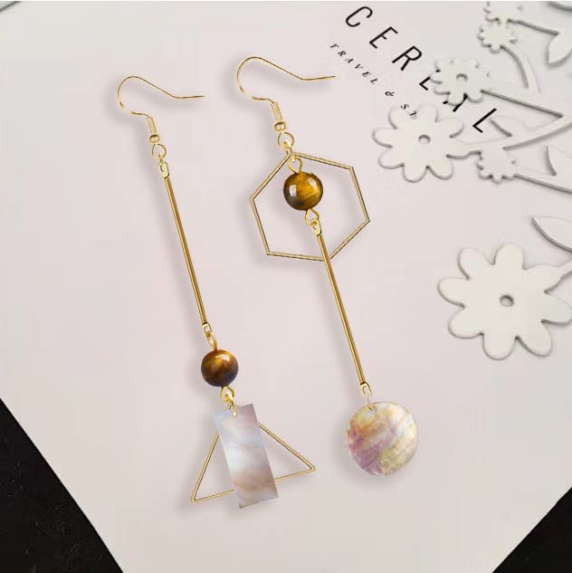 Material: Shell, Tiger eye stoneMetal type: AlloyBack Finding: French WireEarring design: DropGem type: No inlayPREMIUM MATERIAL: boho Mismatch Asymmetry Geometric earrings are made of shell material,handcrafted, comfortable to wear,no fading,the ear hooks are smooth and firm,and won't fall off when worn for a long time.The long tassel earrings,small round ball is tiger's eye stone, wearing it will make you more fashionable and attract more attention.EARRING SIZE: Asymmetry Shell earrings are 3.9inch in length,fashionable and delicate geometric shape, with shell decoration,it is perfect for your daily attire.The styles of dangle earrings will never go out of style,for any occasion and season,it is the ideal accessory.EASY TO MATCH: boho Mismatch Earrings for women can be well matched with different clothes,such as T-shirts,casual wear,skirts,etc,it can be worn by women of any age. Statement earrings,suitable for all occasions formal or casual,and can be given to someone special or kept for yourself.WIDE RANGE OF APPLICATIONS: You can wear different styles of trendy Asymmetry earrings according to your mood to add sophistication and beauty to you.Vintage earrings are an ideal gift for birthdays,festivals,Mother's Day,Valentine's Day,perfect for everyday wear,travel,parties and more.GURANTEE FOR YOU:If you have any questions about the purchased boho Mismatch Asymmetry shell drops earrings,please contact us in time, and your problems will be solved in time. Perfect for everyday use. first-class materials and excellent craftsmanship ensure long-lasting durability.