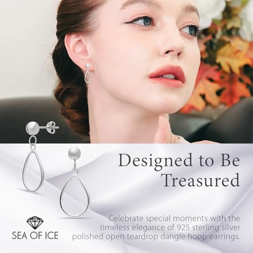 trending ! Sterling Silver Open Teardrop Dangle Hoop Earrings 5mm Bead Post Dangle Earrings for Women