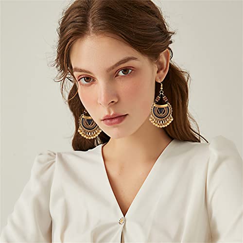 More information about Handmade Bohemian Vintage Gold Bronze Round Flower Geometry Dangle Drop Earrings with multiple Teardrop Pendant for Women