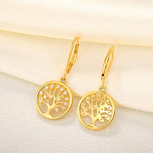 • ❤ snug TO WEAR -Attractive design, this tree of life earrings is made of real hypoallergenic 925 Sterling Silver earrings, cubic zirconia leverback earrings good for sensitive ears.incredibly easy to clip on and off