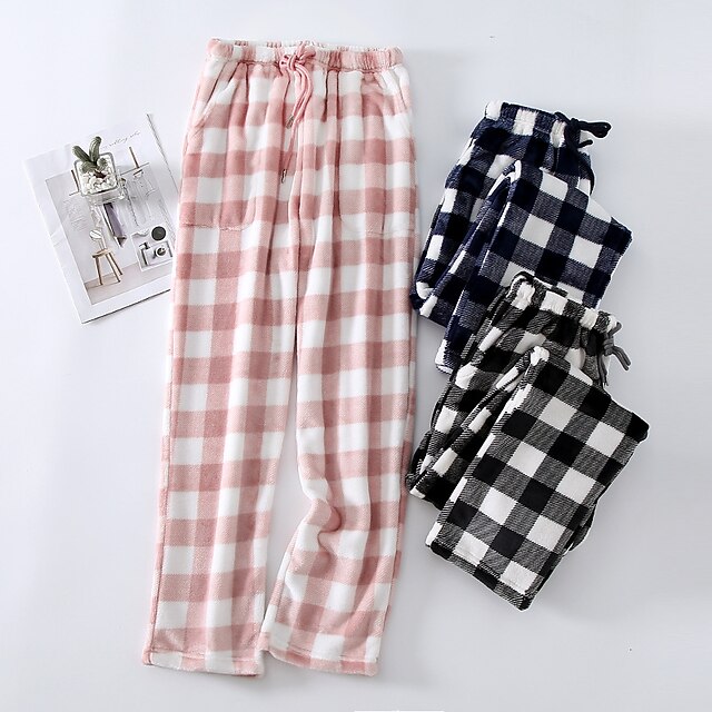 Women's Pajamas Pants Nighty Pjs 1 PCS Grid / Plaid Fashion elementary Comfort Party Home Bed Flannel comfortable Breathable Long Pant Elastic Waist Print Pocket Fall Winter Home Outfits