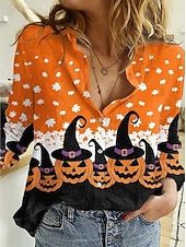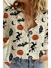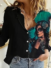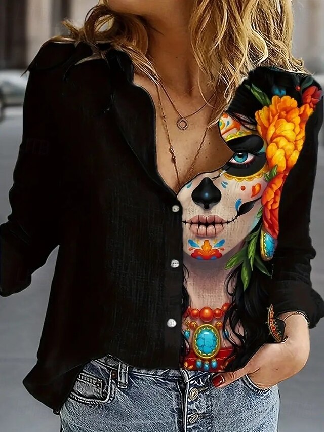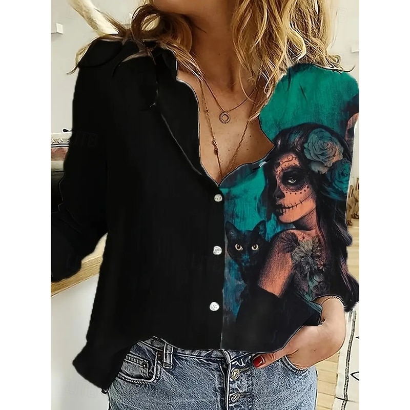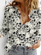 More information about Halloween Women's Shirt Skulls Print Button Down Tunic Shirt Collar Long Sleeve Graphic Vintage Tropical Daily Regular Tops Work Daily Holiday s Print Red / black Black White Orange Green Spring