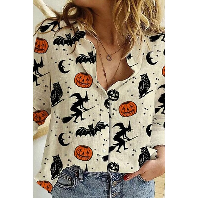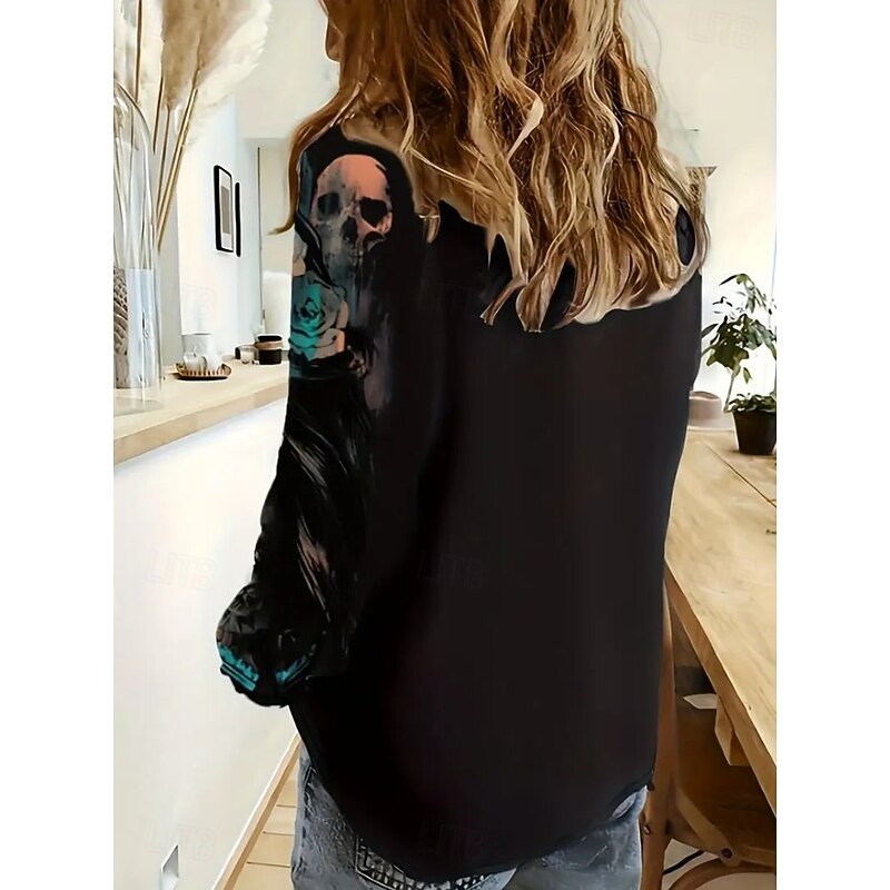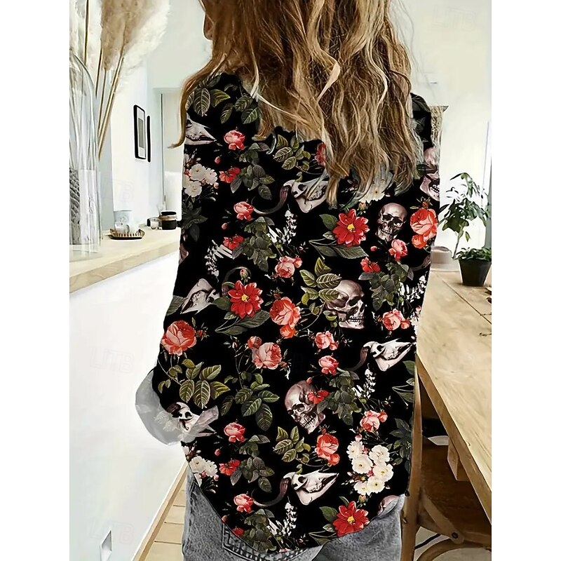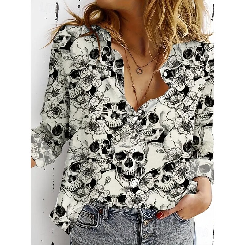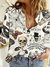 trending ! Halloween Women's Shirt Skulls Print Button Down Tunic Shirt Collar Long Sleeve Graphic Vintage Tropical Daily Regular Tops Work Daily Holiday s Print Red / black Black White Orange Green Spring