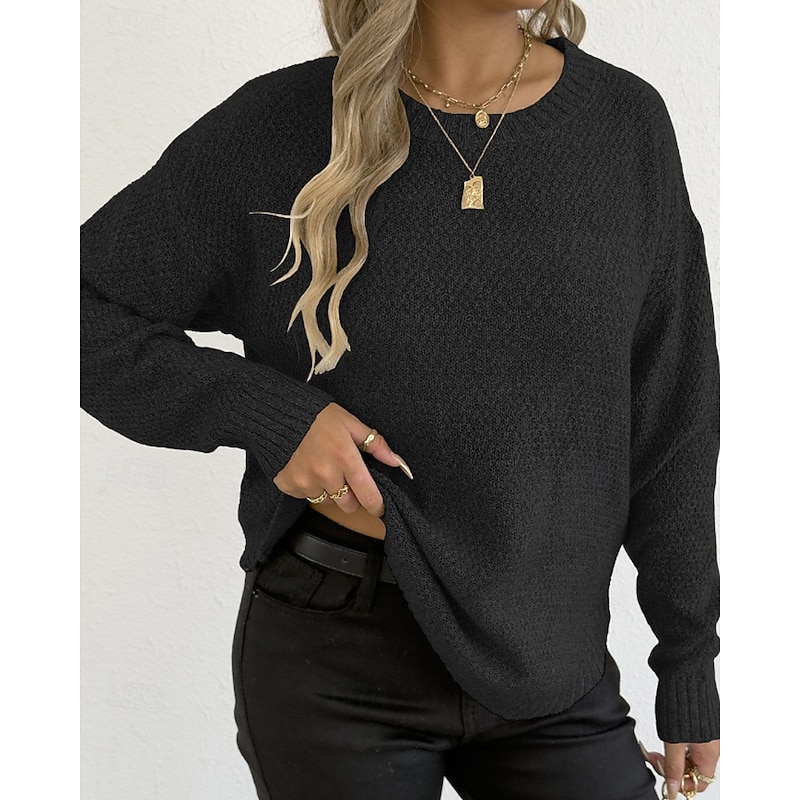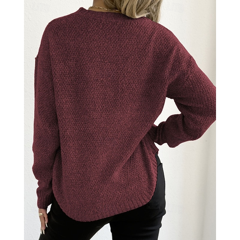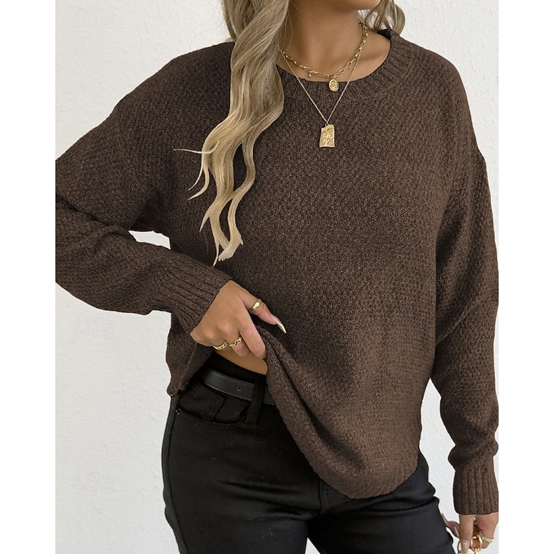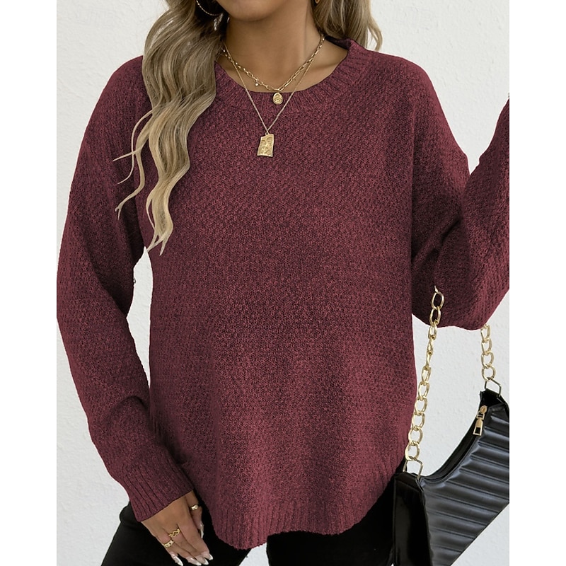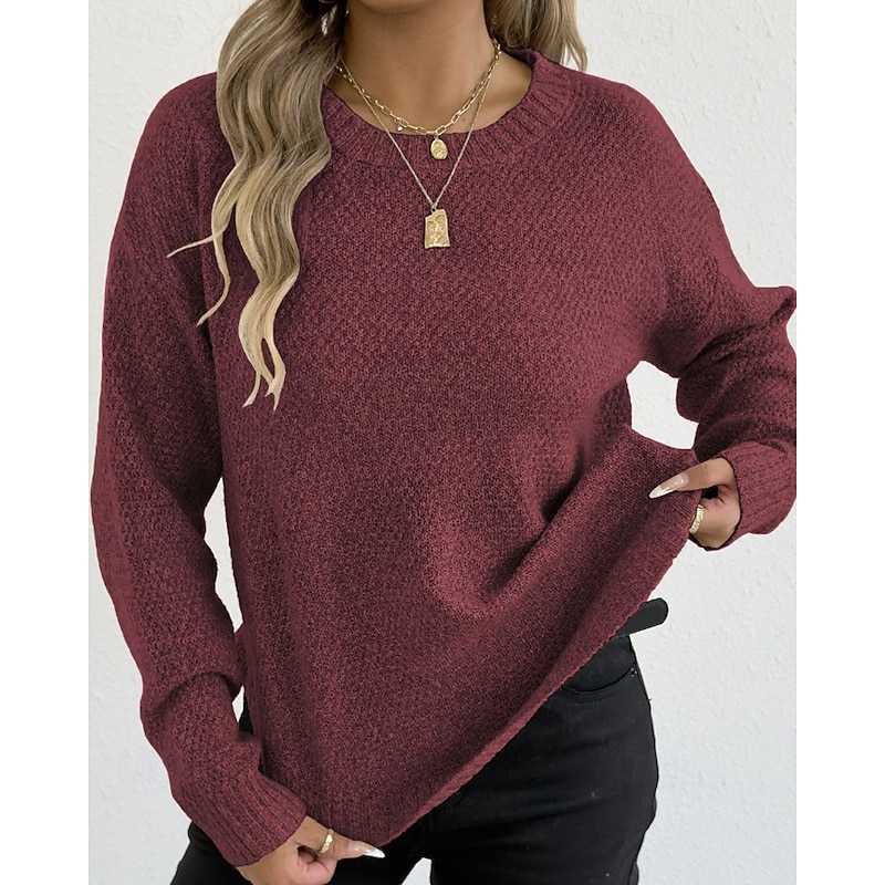Why Choose Women's Sweater Pullover Streetwear Casual Solid Color Crew Neck Knitted Long Sleeve Regular Tops Knit Holiday Going out Weekend Black Wine Fall Winter?