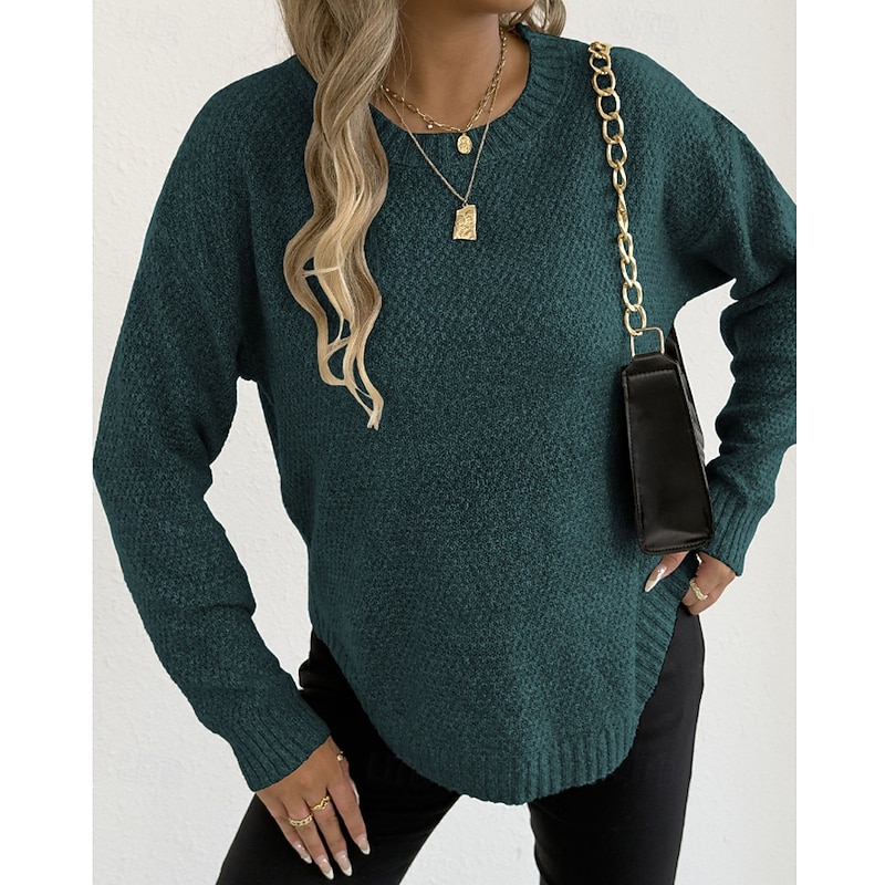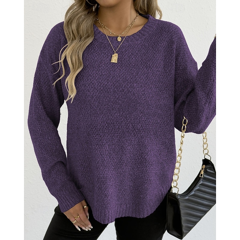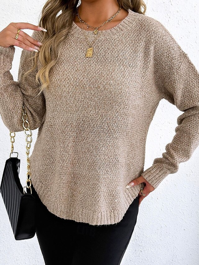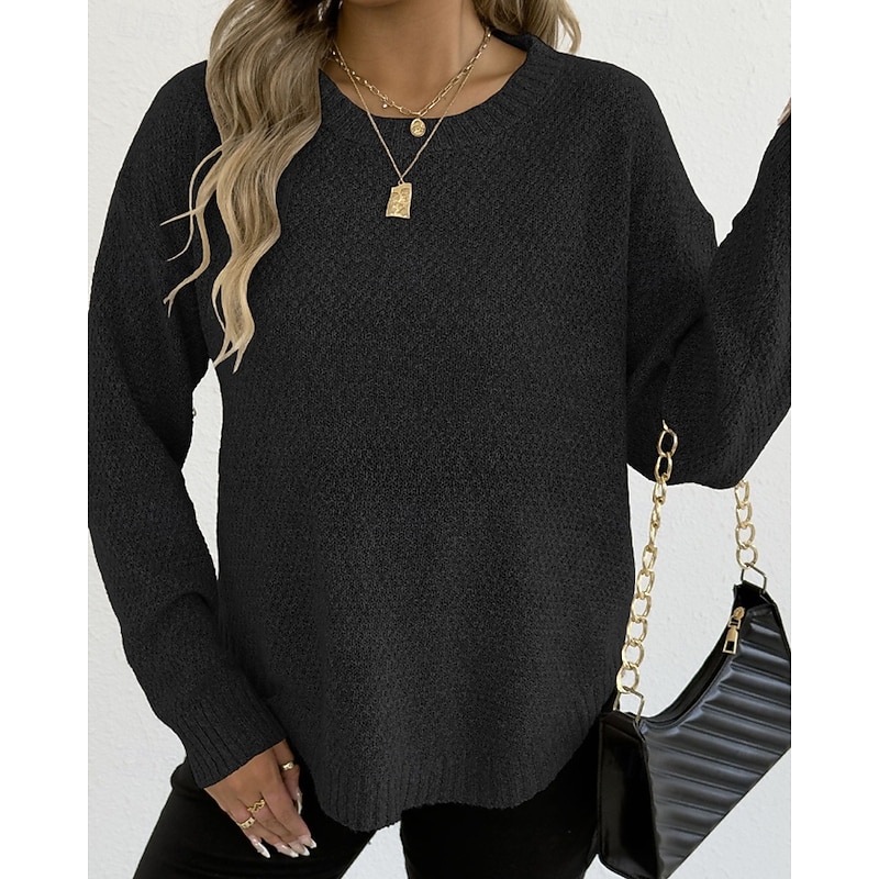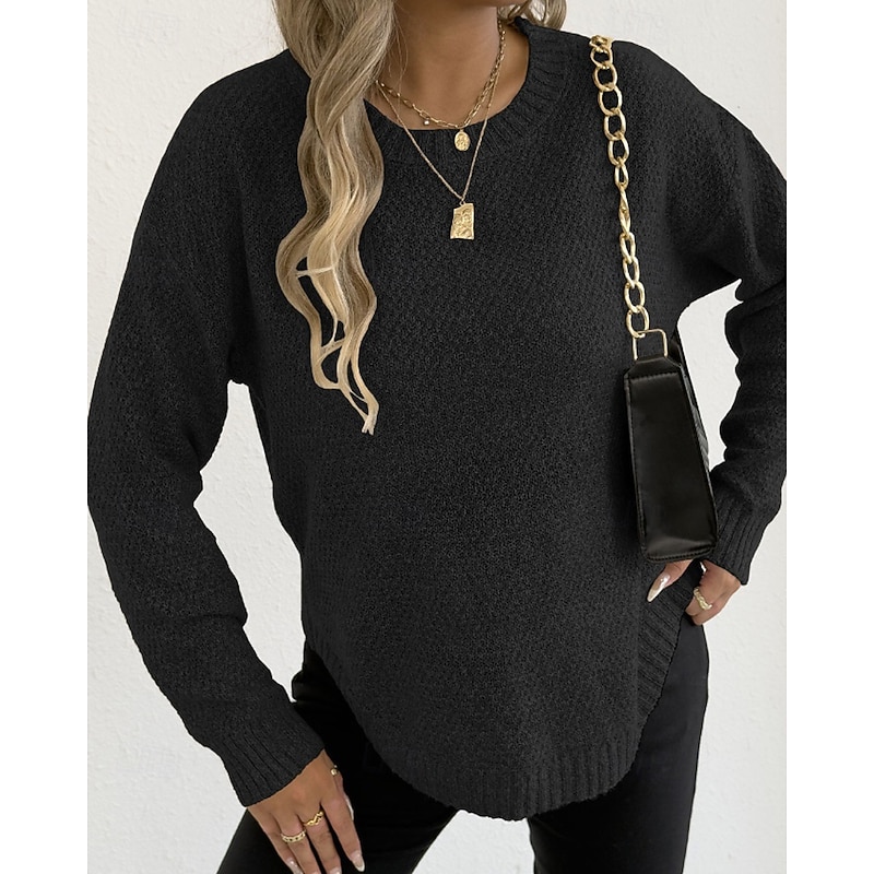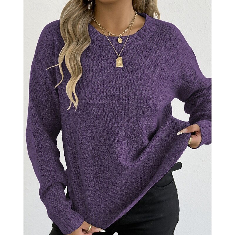 Why Choose Women's Sweater Pullover Streetwear Casual Solid Color Crew Neck Knitted Long Sleeve Regular Tops Knit Holiday Going out Weekend Black Wine Fall Winter?
