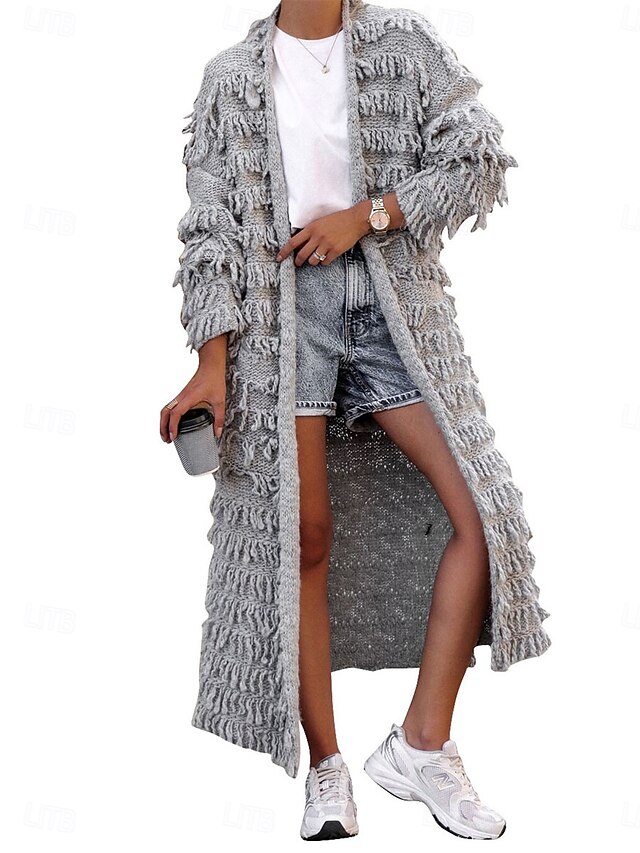 Highlights [Fabric] : Made from a cozy and soft blend of polyester, this long cardigan offers both warmth and comfort, perfect for fall and winter wear. The material ensures a micro-elastic fit, making it ideal for layering in cooler weather. [Fit] : Featuring a loose fit, this cardigan drapes effortlessly over any casual outfit, providing a relaxed and comfortable feel. Its long length and full-length sleeves offer full coverage, adding to its suitability for cooler temperatures. [Design Highlights] : The cardigan boasts a ribbed knit style with playful tassel details that add a trendy and bohemian touch to the overall design. The open front neckline allows for easy layering, while the textured knit pattern enhances its casual charm. [Occasions] : Ideal for daily wear, outdoor activities, or weekend outings, this cardigan complements a laid-back yet fashionable look. It's an excellent choice for anyone looking to add a touch of style to their everyday wardrobe. [Size Range] : Available in sizes S, M, L, and XL, this cardigan fits a range of body types, ensuring every wearer can enjoy its cozy and sophisticated design. Perfect for everyday use. first-class materials and excellent craftsmanship ensure long-lasting durability.