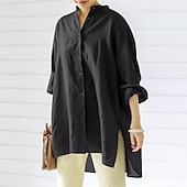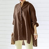 More information about Boho Shirt Women's Black Blue Brown Solid / Plain Color Shirred Party Sports & Outdoor Active Vacation Sports Round Neck Cotton Linen Loose Fit S
