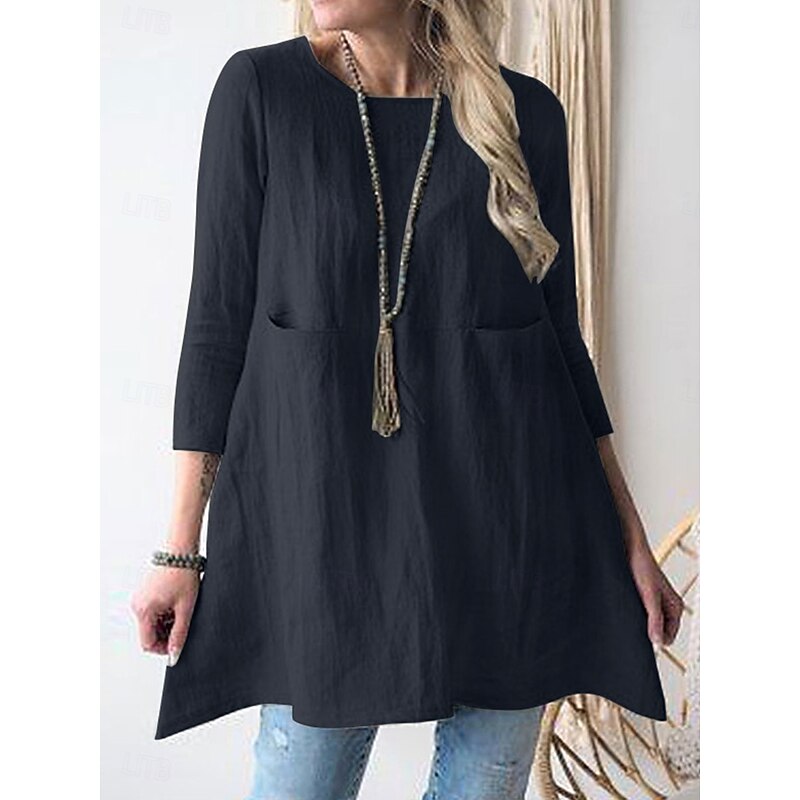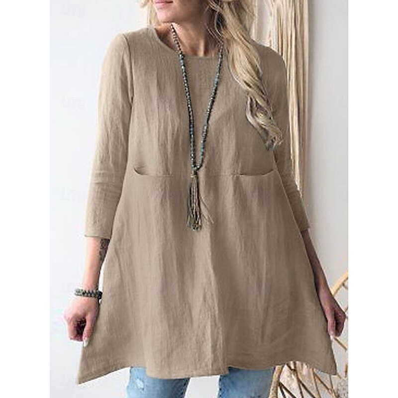 This Women's Mini Dress Cotton Linen Dresses Casual Dress modern Basic Casual Vacation Daily Loose Fit Plain 3/4 Length Sleeve Crew Neck Green Khaki Dark Blue Summer Spring Fall combines elegant design with practical functionality. Every detail has been carefully considered to ensure you get the best possible experience. The first-class construction means this product will serve you well for years to come.