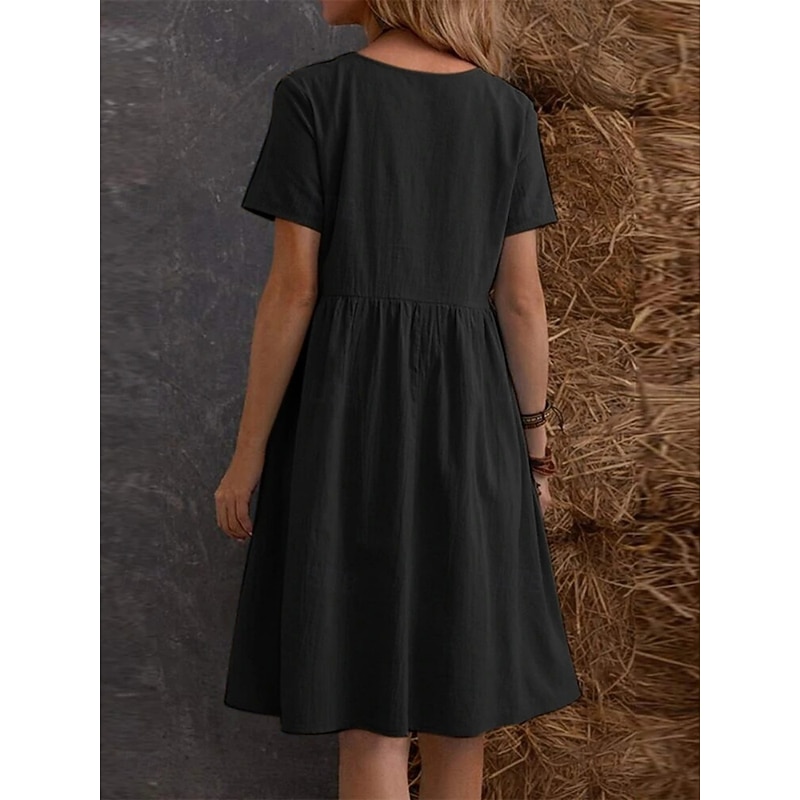 More information about Women's Mini Dress Cotton Linen Dresses Casual Dress Cotton Maxi Dress Basic Casual Vacation Daily Regular Fit Plain Short Sleeve Crew Neck Black Apricot Summer