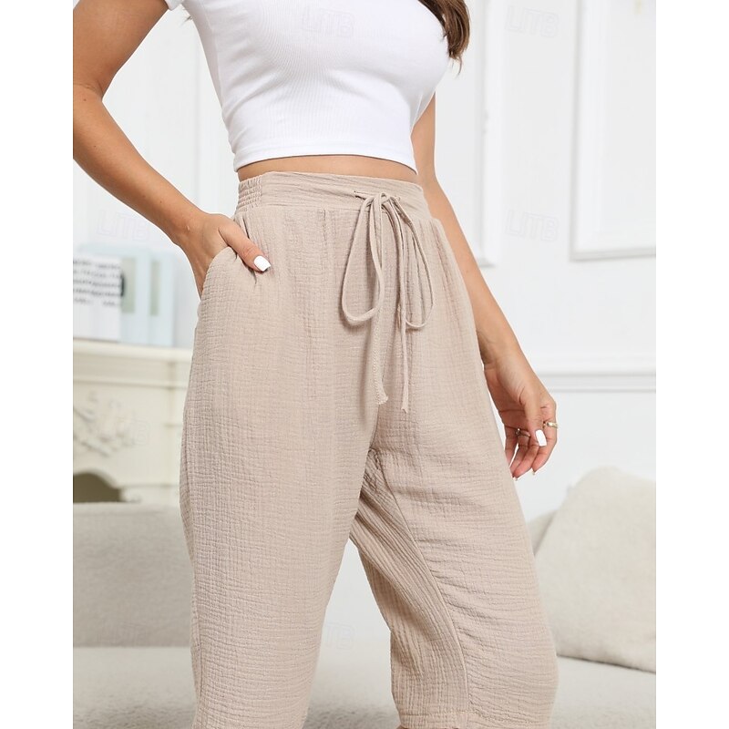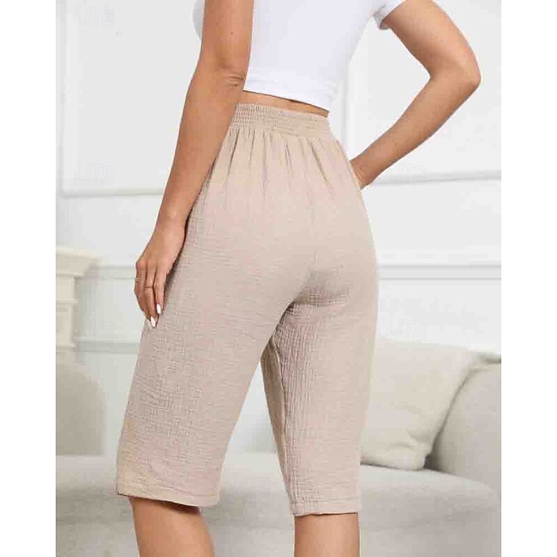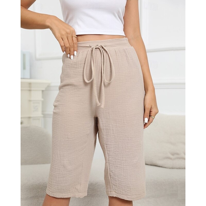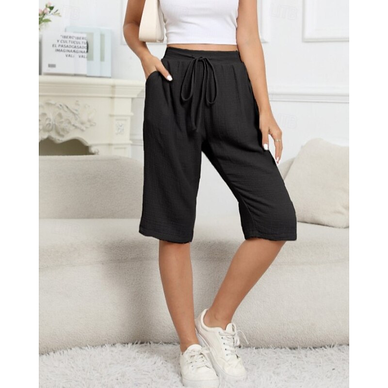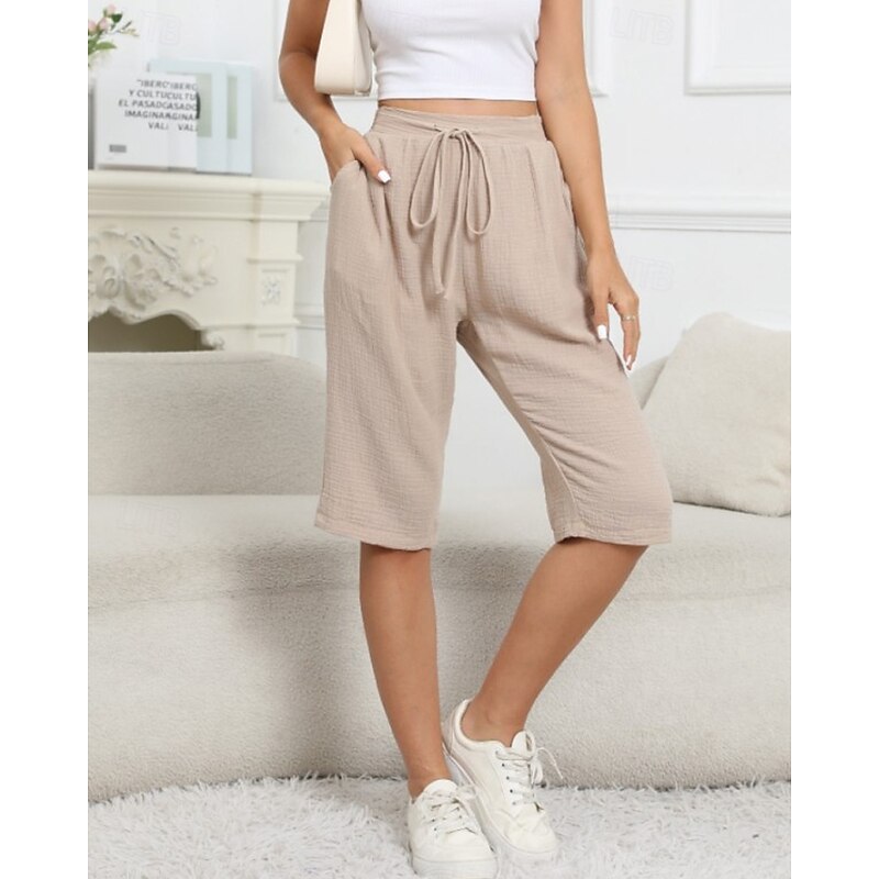 More information about Women's Cotton Linen Shorts Shorts Lightweight Casual Knee Length Mid Rise Plain Pocket Drawstring Breathability smooth Inelastic Casual Daily Weekend Navy Black White Khaki Summer Spring