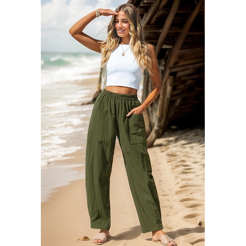 This Women's Cotton Linen Pants Basic Full Length High Waist Plain Pocket Comfort Outdoor Micro-elastic Vacation Street Causal Black Pink Wine Navy Blue Summer Spring Fall Loose Fit combines elegant design with practical functionality. Every detail has been carefully considered to ensure you get the supreme possible experience. The premium construction means this product will serve you well for years to come.