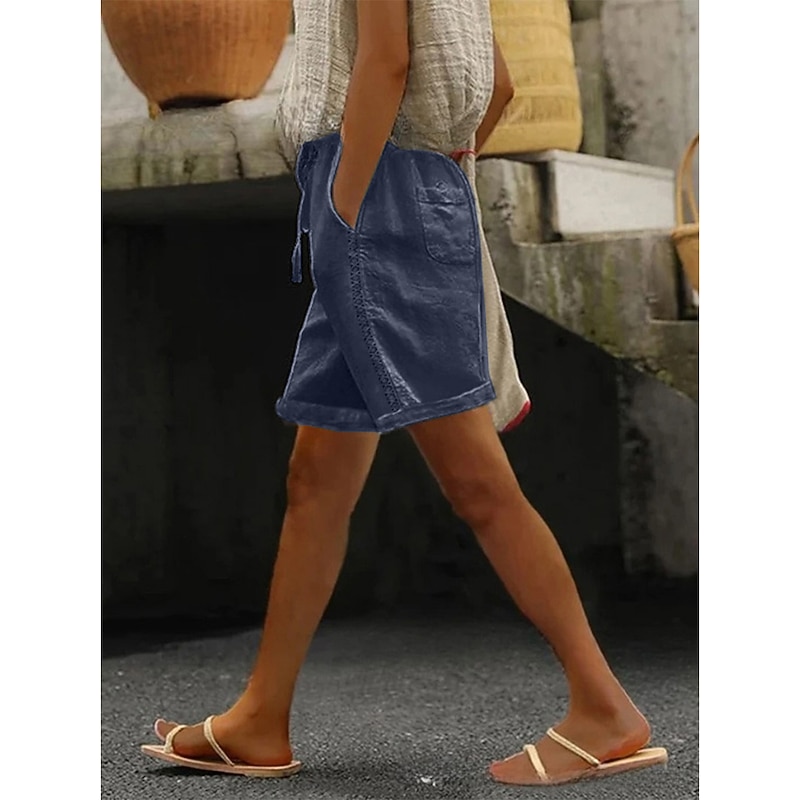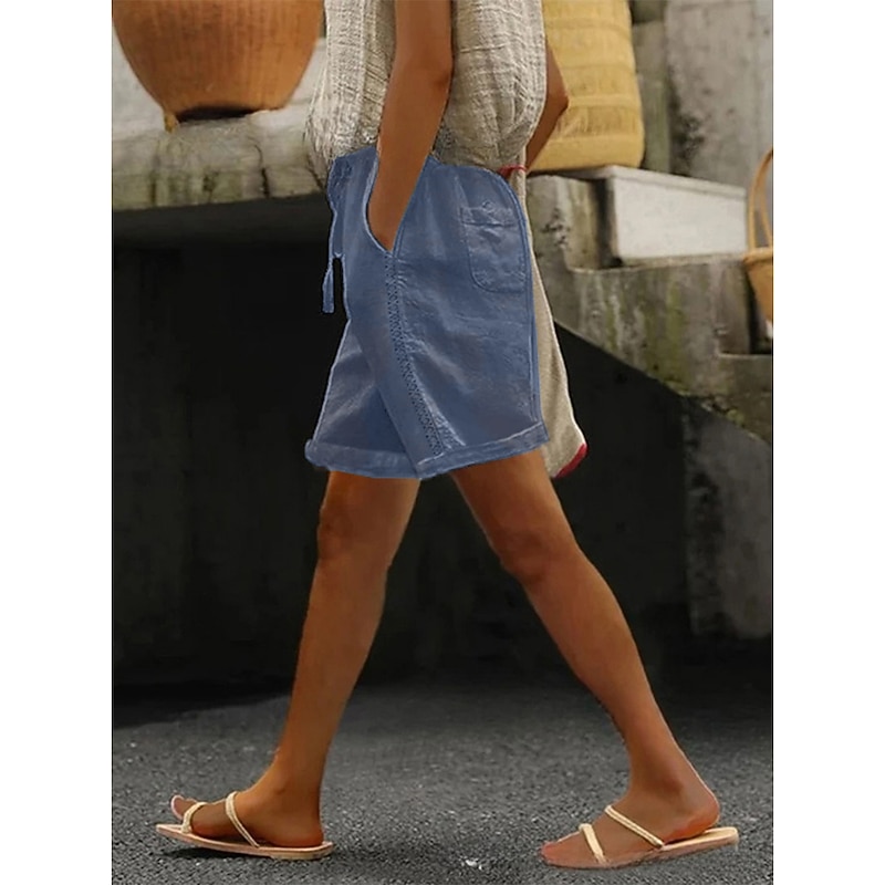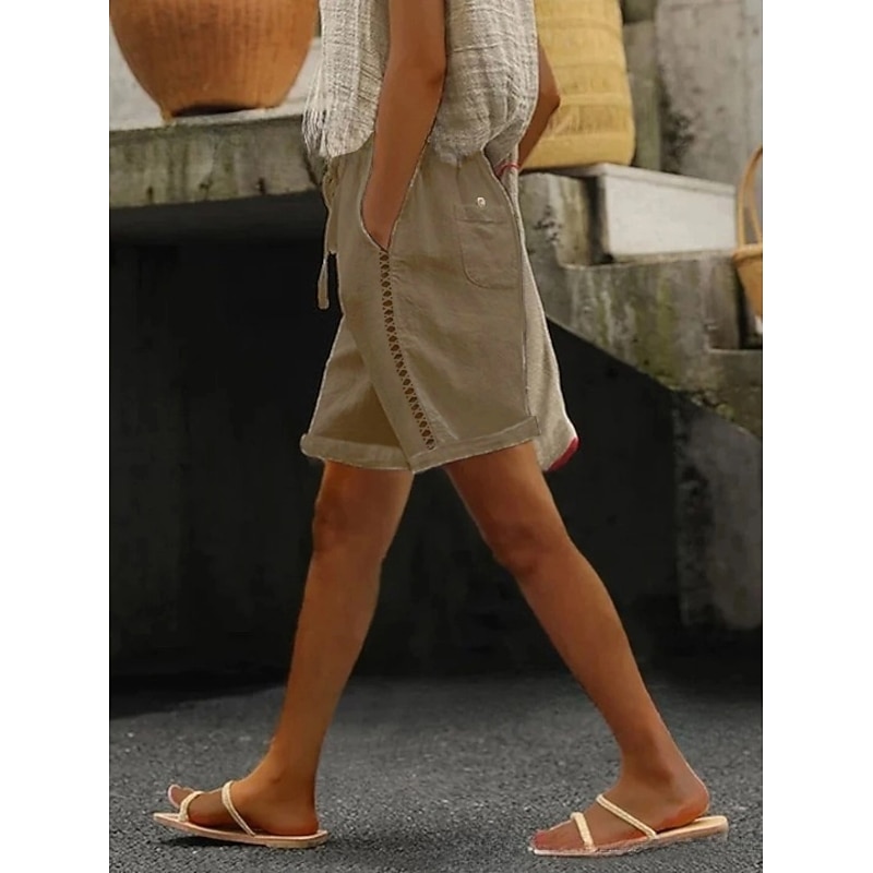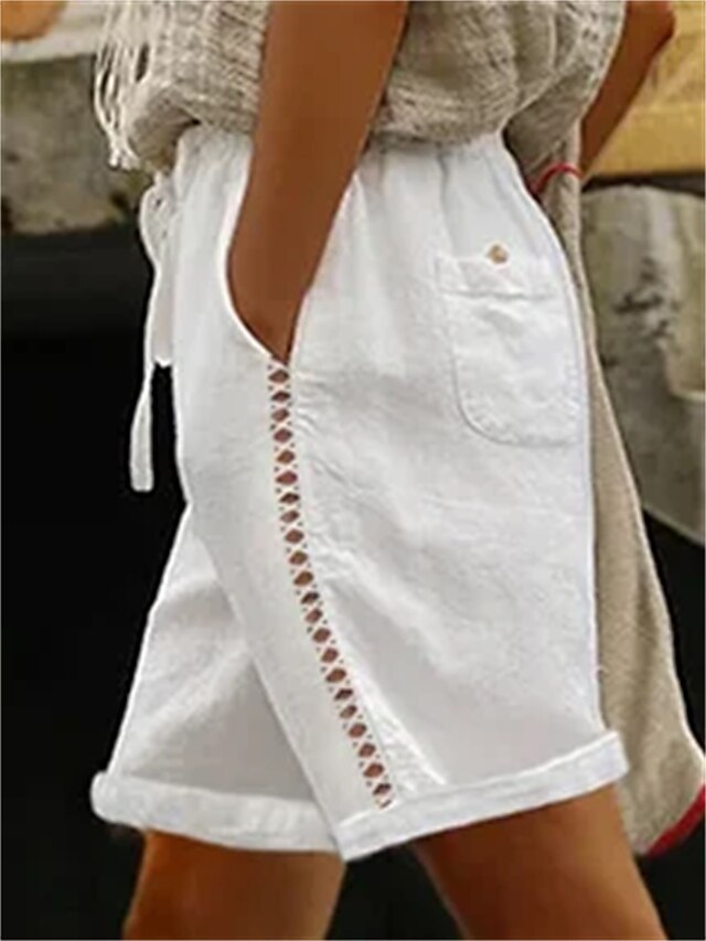 More information about Women's Cotton Linen Shorts Wide Leg Shorts Fashion Short Plain Side Pockets Cut Out Comfort Inelastic Vacation Dark Grey White Khaki Light Grey Regular Fit