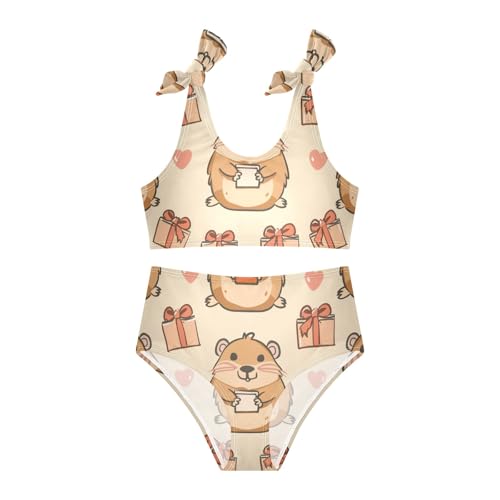 Girls' Bikini Set, Capybara Pattern Holding A Present Kids Swimsuit 2 Pcs Beach Bathing Suit