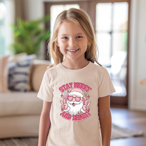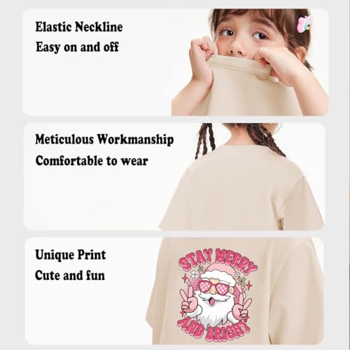 • Fun Christmas Theme Prints: These girls' Christmas Tshirts feature adorable Christmas-themed designs, such as Christmas trees, "Stay Merry and Bright," "Ho Ho Ho," charming pink Christmas trucks, Santa Claus, reindeer, snowmen, and more, ideal for children to wear and celebrate Christmas