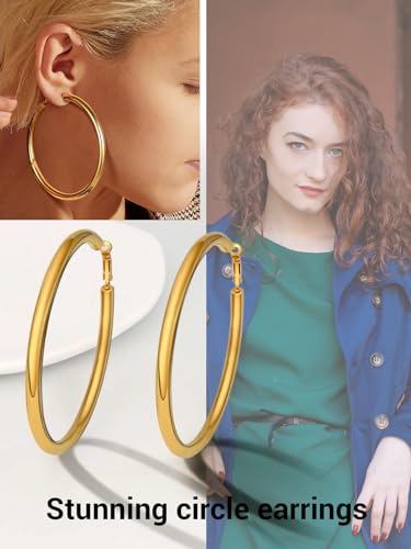 • Gold Hoop Earrings - hypoallergenic due to made based on stainless steel metal, plated with 18K Real Gold, charming and eye-catching, lead at no charge, nickel free earrings for women's sensitive ears.