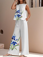 Why Choose Women's Elegant Fashion Streetwear Two Piece Sets Blouse Vest Pants Trousers Sleeveless Crew Neck Outdoor Work Casual Floral Print Vacation Daily Holiday White Royal Blue Blue Summer Regular Fit?
