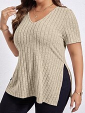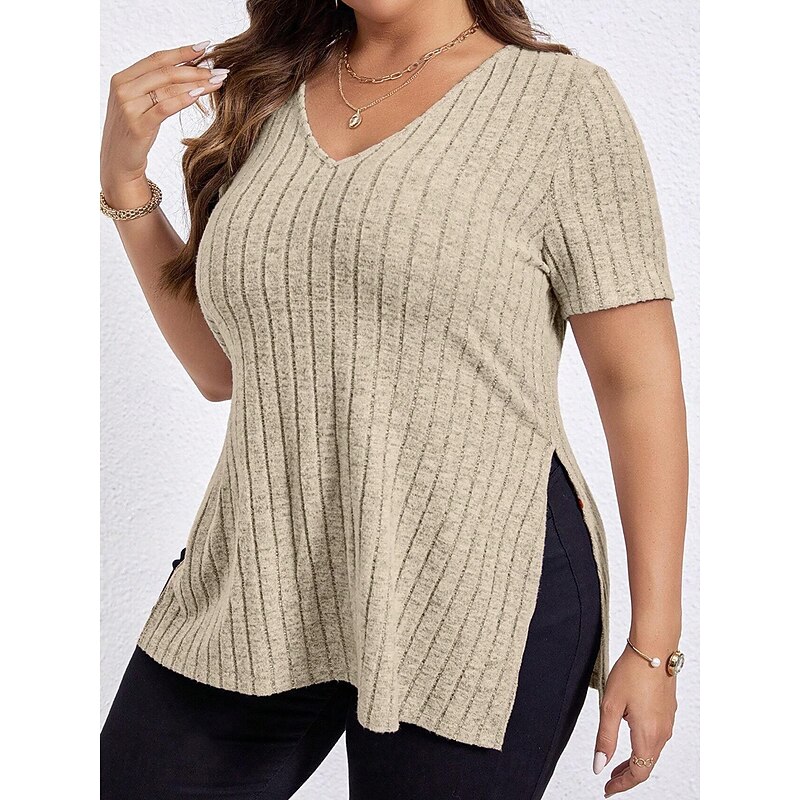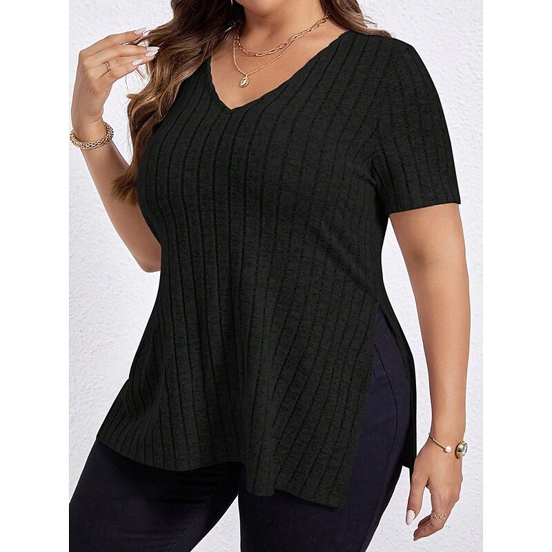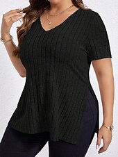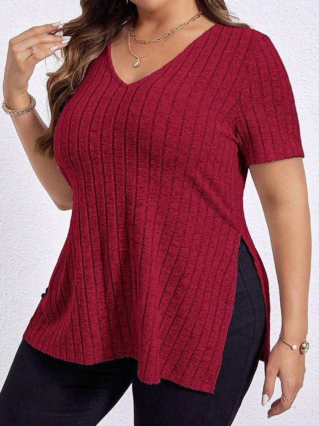 trending ! Women's Plus Size Tops T Shirt Solid Color Graphic Short Sleeve V Neck Casual Daily Polyester Summer Spring Black Wine