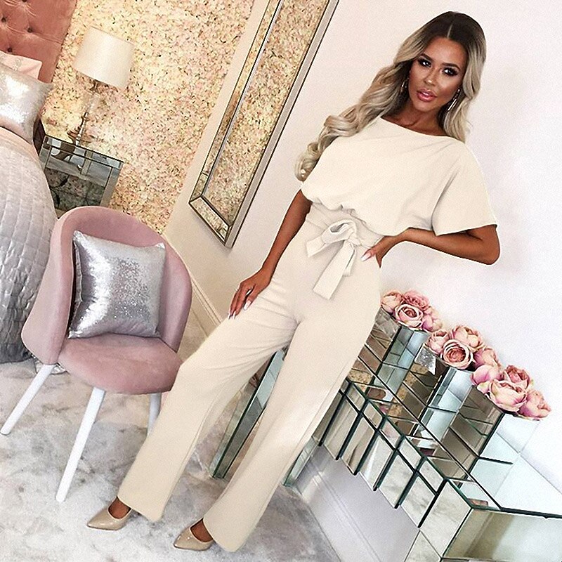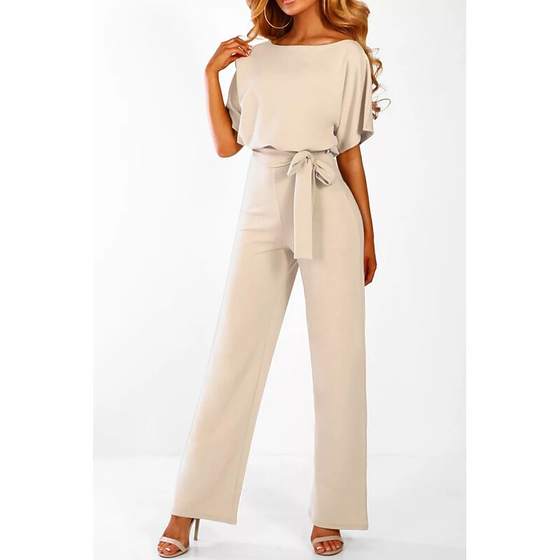 Jumpsuits for Women Summer Dressy Short Sleeve Belt Clean Fit Party Wide Leg Playsuit Long Pants Summer