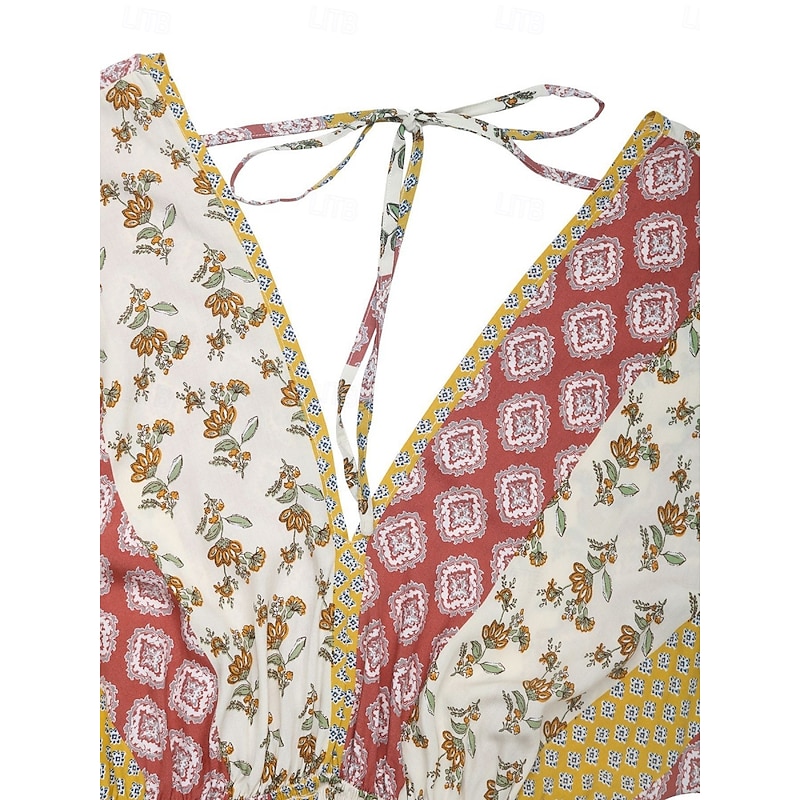 More information about Women's Normal Jumpsuit Holiday Floral 3/4 Length Sleeve V Neck High Waist Vacation Daily Regular Fit Yellow Summer