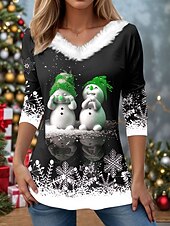This Christmas Women's T Shirt Graphic Snowflake Vintage modern Classic Long Sleeve V Neck Regular Tops Daily Patchwork Print Wine Blue Green Fall Winter combines elegant design with practical functionality. Every detail has been carefully considered to ensure you get the best possible experience. The first-class construction means this product will serve you well for years to come.