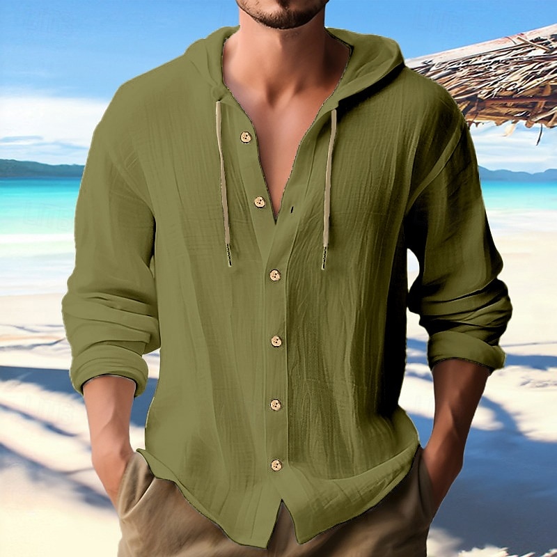 This Men's Shirt Linen Shirt Calico Shirt Beach Wear Button Up Shirt Hooded Shirt Plain Vacation Casual Black White Blue Green Long Sleeve Hooded Spring & Summer Clothing Apparel Buttons combines elegant design with practical functionality. Every detail has been carefully considered to ensure you get the leading possible experience. The finest construction means this product will serve you well for years to come.