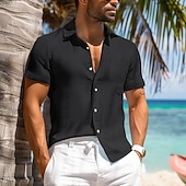 Why Choose Men's Cotton Linen Shirt White Cotton Shirt Summer Shirt Casual Shirt Cuban Collar Shirt Plain Vacation Curise Black White Navy Blue Khaki Short Sleeve Lapel Spring & Summer Clothing Apparel Pocket?