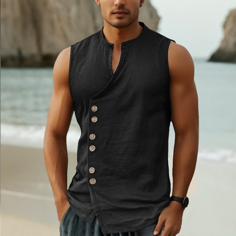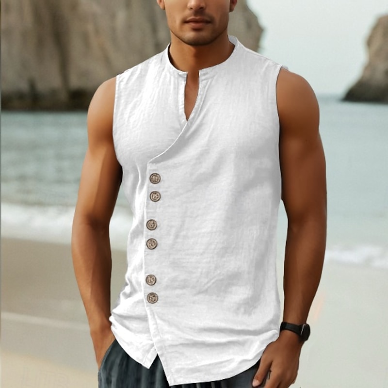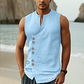 Why Choose Men's Shirt Linen Shirt Summer Shirt Beach Shirt Vintage Shirt Sleeveless Shirt Plain Vacation Holiday Black White Blue Khaki Sleeveless Mandarin Collar Summer Spring Clothing Apparel Buttons?