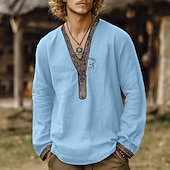 trending ! Men's Shirt Linen Shirt Popover Shirt Summer Shirt Retro Shirts Vintage Shirt Solid Color Vacation Street White Sky Blue Green Long Sleeve V Neck Summer Spring Clothing Apparel