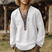More information about Men's Shirt Linen Shirt Popover Shirt Summer Shirt Retro Shirts Vintage Shirt Solid Color Vacation Street White Sky Blue Green Long Sleeve V Neck Summer Spring Clothing Apparel