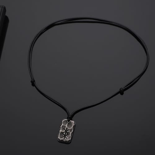 Ankiyabe Stainless Steel Norse Viking Rune Pendant with Adjustable Braided Rope Good Luck/treasure/Strenght/Health Viking Symbol Necklace for Men Women