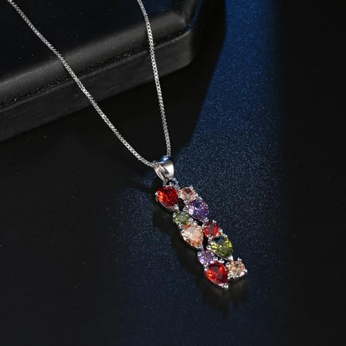 Hermosa Pendant Necklace for Women, Multi Gemstones Sterling Silver Pendant Necklace with Amethyst Garnet Ruby Blue Sapphire Fashion Jewelry