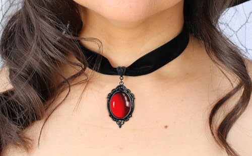 Why Choose Gothic Choker Pirate Necklace for Women. Blood Red Stone for Grunge Style with Silver/Pewter Finish. Pendant Witch Necklace for Woman Halloween Costume Jewelry Vampire Accessories, Evil Eye, Female Devil, Antique Amulet?