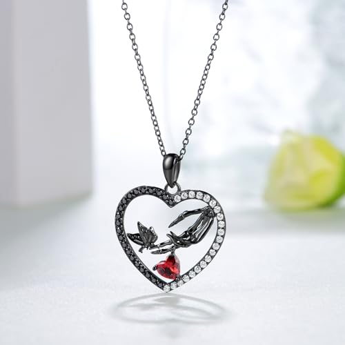 Material: Sterling SilverMetal type: Sterling SilverClasp type: BoxChain type: RoloGem type: Cubic ZirconiaItem type name: Pendant Necklaces【Gothic Design】: Our skeleton necklace showcases gothic elegance and seduction. The skeleton hand and butterfly in the heart pendant and the red heart zirconia symbolize the spirit of courageously pursuing what you love. It is the perfect accessory to complete any gothic outfit.【Hypoallergenic Material】: Crafted from high-quality 925 sterling silver and cubic zirconia, this gothic Necklace is both stunning and durable. The red heart zirconia inlay makes it look more sophisticated, elegant and beautiful. It is also hypoallergenic, lead-free, nickel-free and cadmium-free, making them very safe for long-term wear.【Size】: This Gothic jewelry height 0.87 inch (2.2 cm),width 0.95 inch (2.4 cm). The skeleton necklace comes with a beautiful jewelry box and cleaning cloth, making it an excellent gift for birthdays, anniversaries, Christmas or other special occasion.【Gothic Gifts】: This skeleton necklace is perfect for a variety of occasions such as birthdays, anniversaries, Christmas, Valentine's Day day, and everyday wear. It is ideal for women who appreciate gothic fashion and make a great gift for friends, family or even yourself. You can give it to your moms, wives, sisters, friends, or anyone else.【Excellent Service】: We take pride in the quality of our Daixiya products. If for any reason you are not satisfied with your purchase, please feel free to contact us. Our enthusiastic and friendly customer service team will always be available to assist you. Our products are not suitable for childrenaged 12 and below. Perfect for everyday use. first-class materials and excellent craftsmanship ensure long-lasting durability.