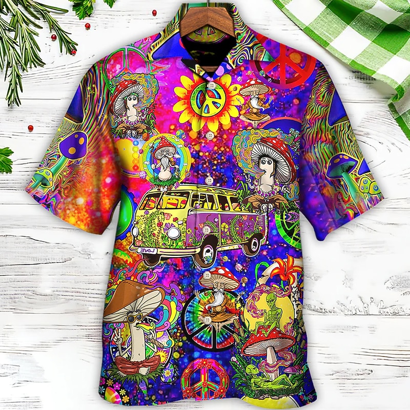 More information about Men's Mushroom Shirt Summer Hawaiian Shirt Aloha Shirt Short Sleeve Shirt Cuban Collar Sports Fashion Streetwear Casual Hawaiian Holiday White Light Green Red S M L