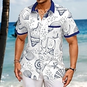 trending ! Men's Shell Starfish Conch Summer Hawaiian Shirt Button Up Shirt Short Sleeve Hawaiian Resort Vacation Holiday Beach Wear Summer Spring Turndown Collared Shirts Front One Pocket White