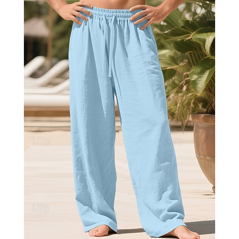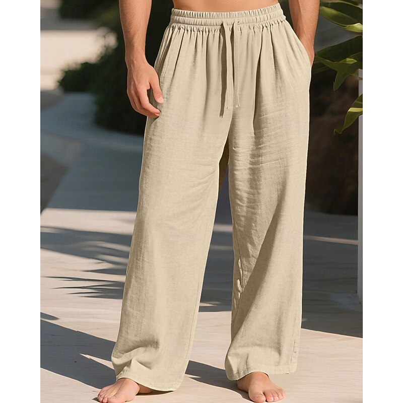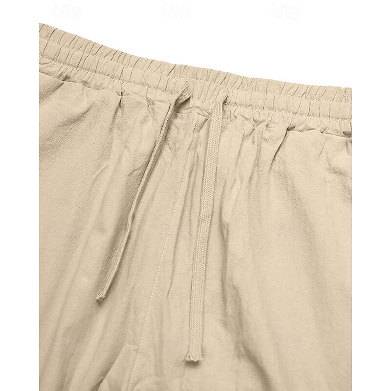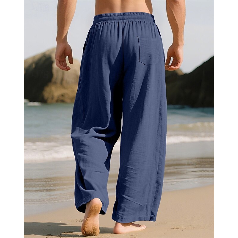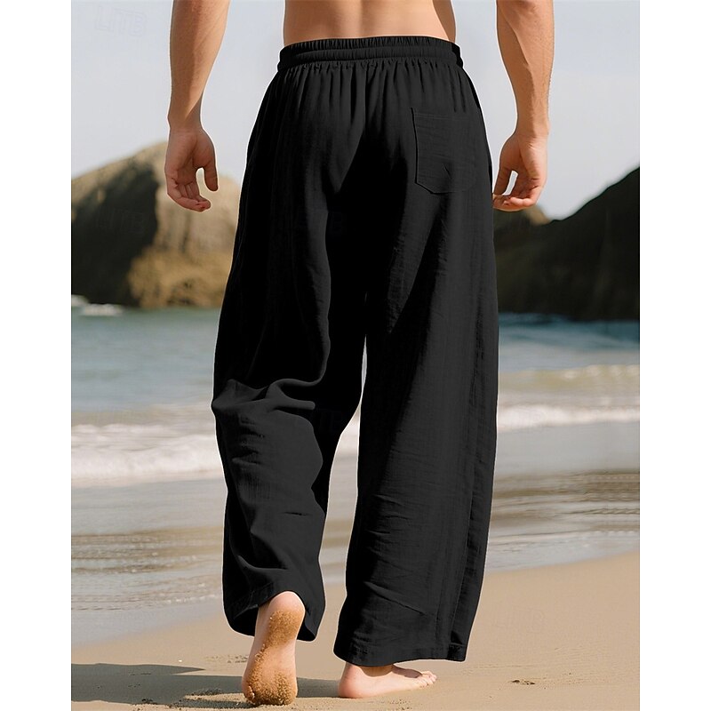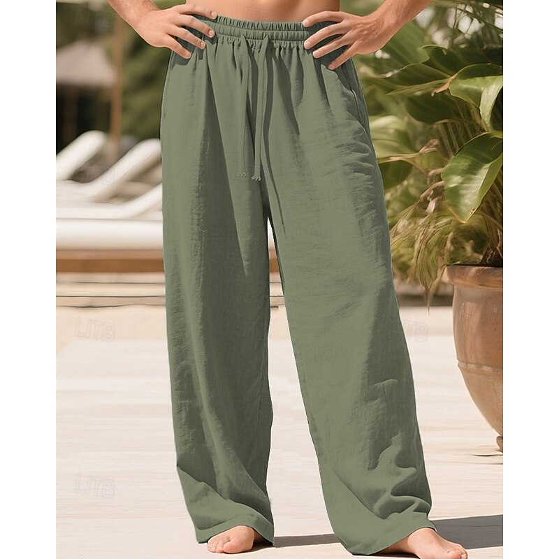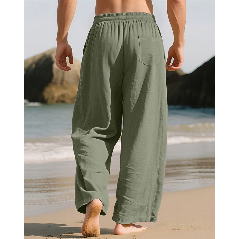 trending ! Men's Linen Pants Trousers Summer Pants Beach Pants Drawstring Pocket Elastic Waist Plain Comfort Breathable Vacation Daily Holiday Hawaiian Boho ArmyGreen Black