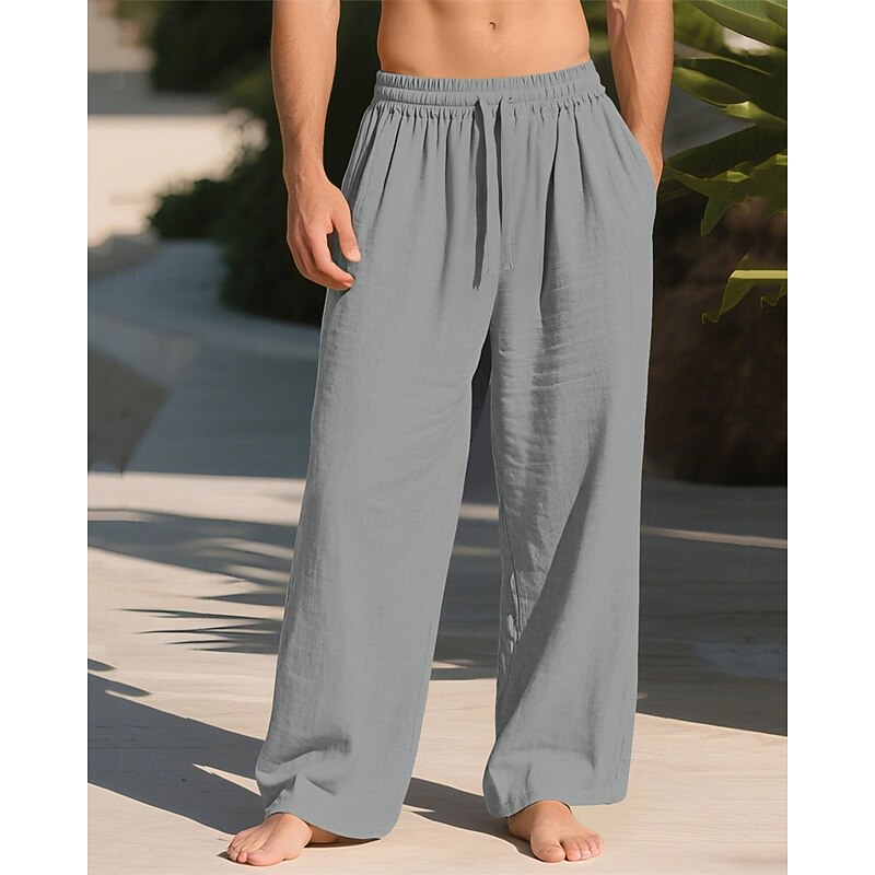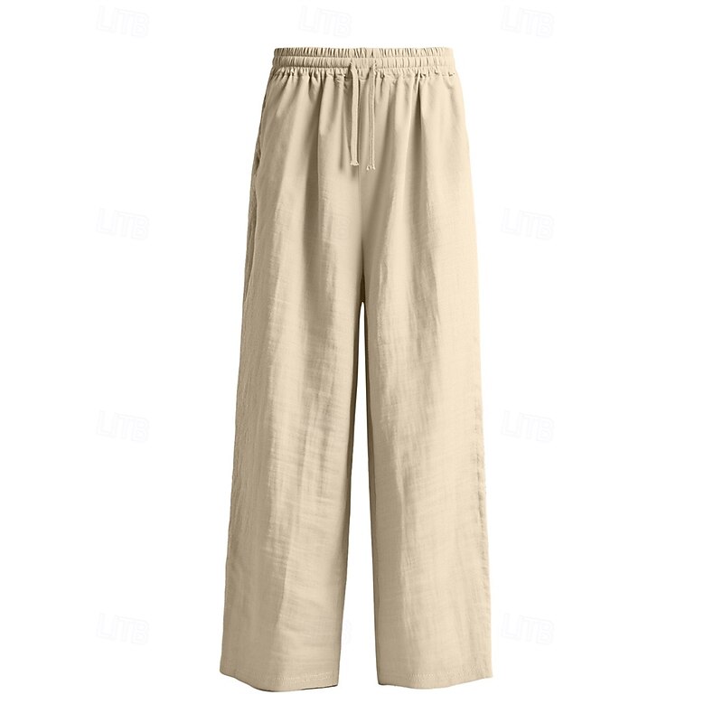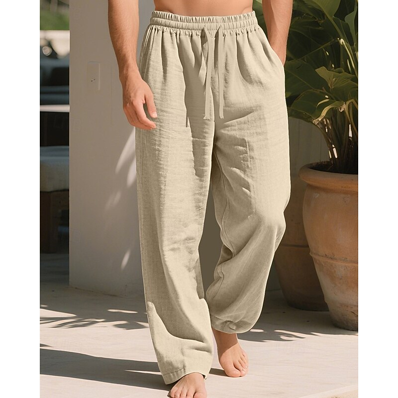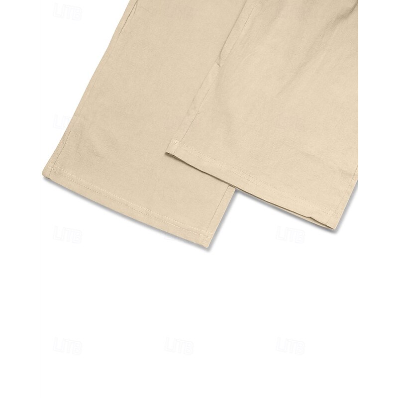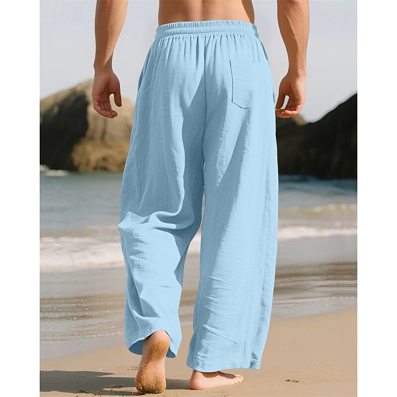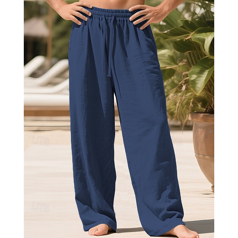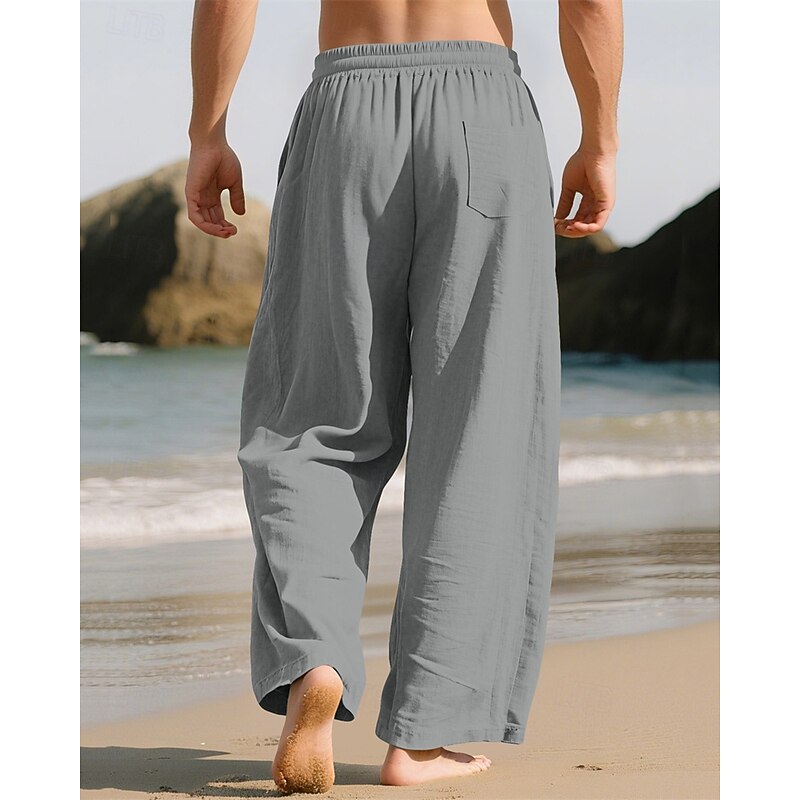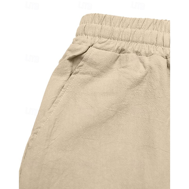 trending ! Men's Linen Pants Trousers Summer Pants Beach Pants Drawstring Pocket Elastic Waist Plain Comfort Breathable Vacation Daily Holiday Hawaiian Boho ArmyGreen Black